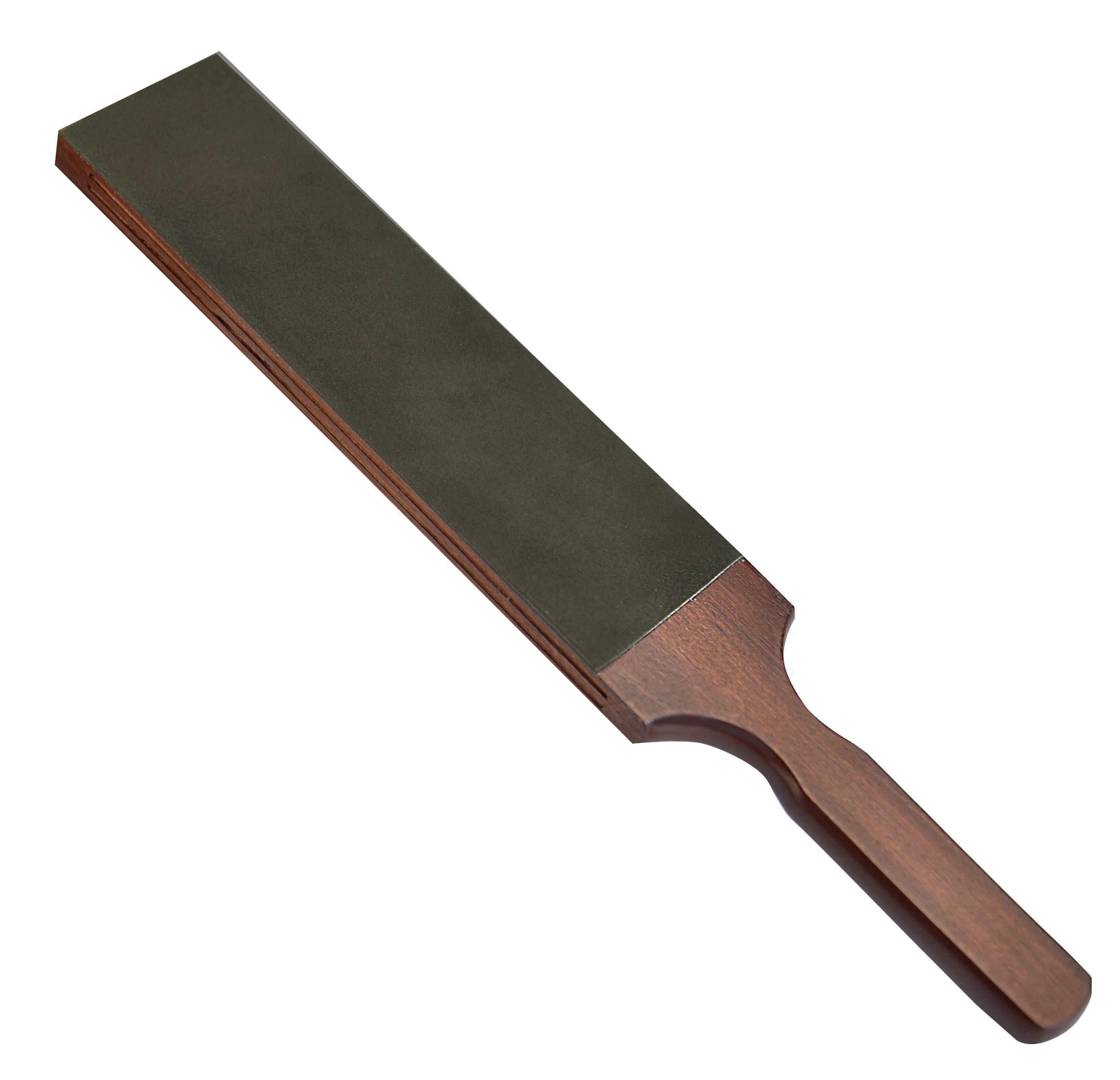 Stoßriemen groß definiert Effizienz und Vielseitigkeit beim Polieren von Werkzeugschneiden. Mit der Option, mit oder ohne Paste verwendet zu werden, bietet es eine flexible Lösung für unterschiedliche Anforderungen. Durch die Möglichkeit, auf die schwarze (rauere) Seite Polierpaste aufzutragen, wird eine zusätzliche Ebene der Präzision und Verfeinerung erreicht. Die feine, braune Seite hingegen eignet sich hervorragend für das Abziehen ohne Paste, wodurch eine glatte und scharfe Schneide entsteht. Dank seiner durchdachten Konstruktion kann der Stoßriemen bequem am Griff gehalten. Die robuste Bauweise garantiert Langlebigkeit und Effektivität, während die Anwendung von hochwertigen Materialien eine zuverlässige Leistung sicherstellt.