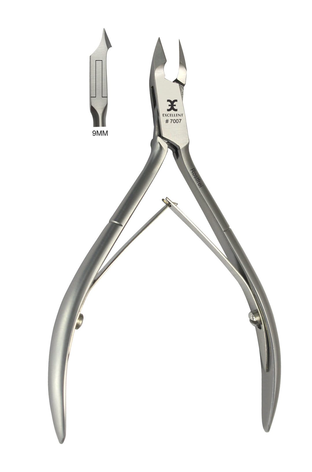Nagelhautzange 11 cm, Schneide schlank gewölbt 9 mm ist ein hochwertiges Instrument, das speziell zur Entfernung von Nagelhaut entwickelt wurde. Dank ihrer gewölbten Schneide passt sie sich perfekt dem Nagel an und ermöglicht ein äußerst präzises Arbeiten. Diese Nagelhautzange wird verwendet, um Hautreste an den Nägeln zu entfernen. Sie ist ein unverzichtbares Werkzeug für den professionellen Einsatz im Bereich der Fußpflege.
