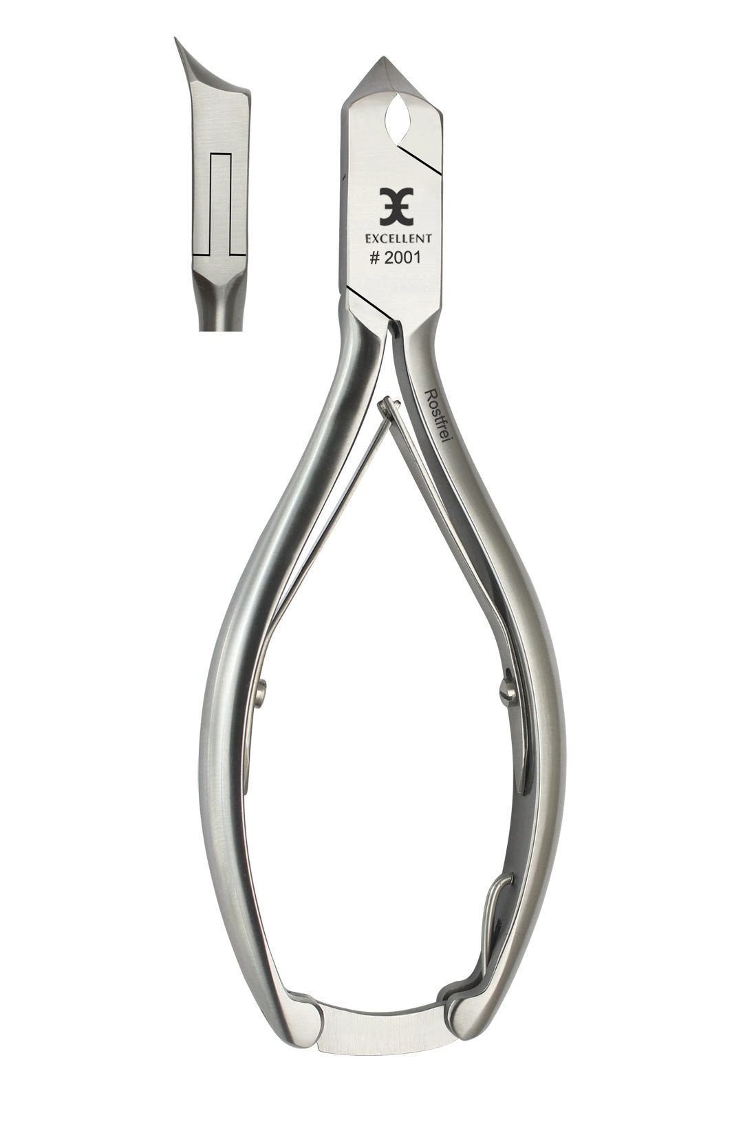 Kopfschneider 14.0 cm hat ähnlich wie ein Nagelknipser, eine leicht gebogene Schneidfläche, die der Form eines Zehennagels ähnelt. Diese Nagelzange eignet sich aufgrund der runden Schneide besonders gut, um Eckennägel oder eingewachsene Nägel zu schneiden. Durch die doppelte Kreuzfeder können auch härtere Fußnägel problemlos mit einem geringen Kraftaufwand geschnitten werden.