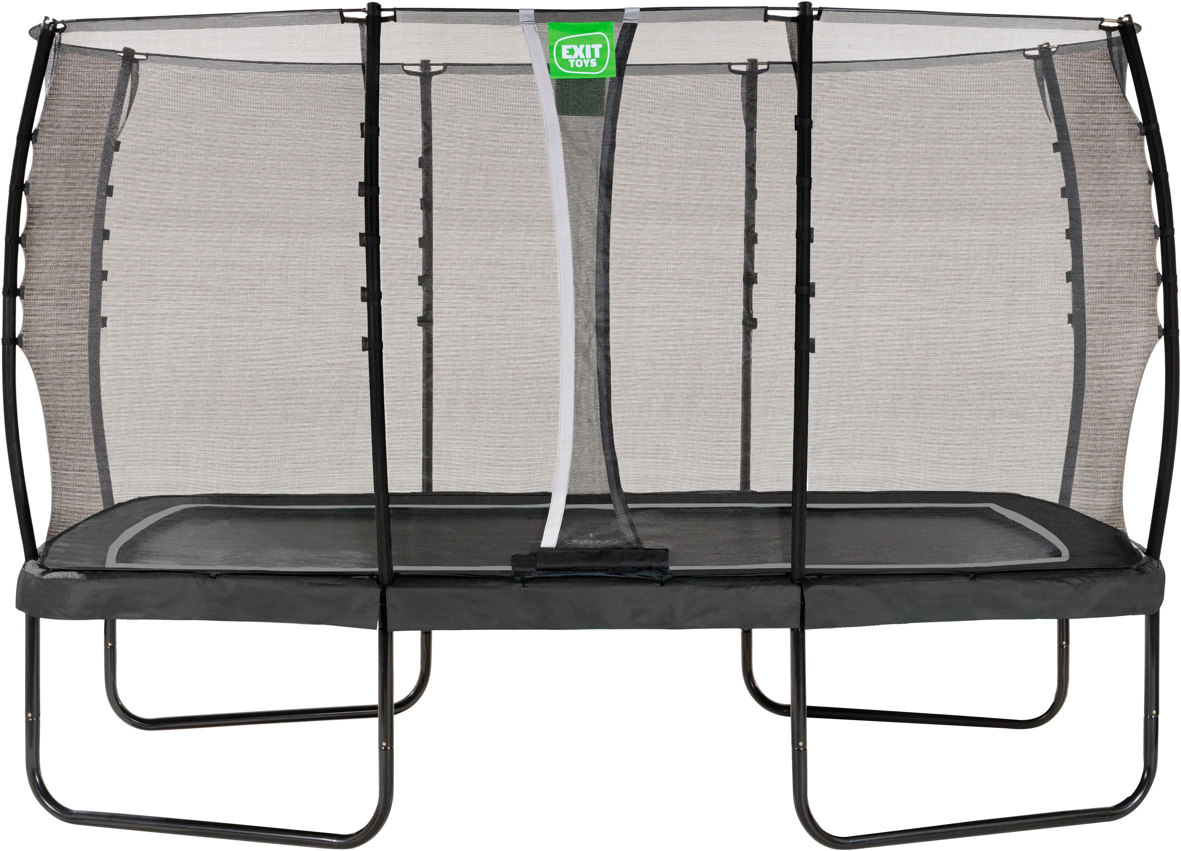 Das EXIT Allure Classic Trampolin ist ein Trampolin mit einem Schutzrand und einem Sicherheitsnetz. Dank des EXIT Foot Protection Systems (FPS), einem Netz zwischen dem Sprungtuch und dem Schutzrand des Trampolins, geraten Trampolinspringer nie mit den Füßen zwischen die Sprungfedern. Das mitgelieferte Sicherheitsnetz hat einen überlappenden Eingang, der sich automatisch schließt. Die Rohre des Sicherheitsnetzes sind außerdem mit Schaumstoff überzogen. Der Trampolinrahmen ist galvanisiert und pulverbeschichtet und hat daher eine lange Lebensdauer. Darüber hinaus ist der Schutzrand dieses Trampolins mit einer schützenden, wasserabweisenden Pvc-Schicht versehen. Mit Hilfe der gebogenen Rohre und einem Glasfaserring wird das Sicherheitsnetz straff in Form gehalten. Und last but not least: Das Allure Classic Trampolin hat doppelkonische Federn, die für einen geschmeidigen Sprung und eine weiche Landung sorgen.