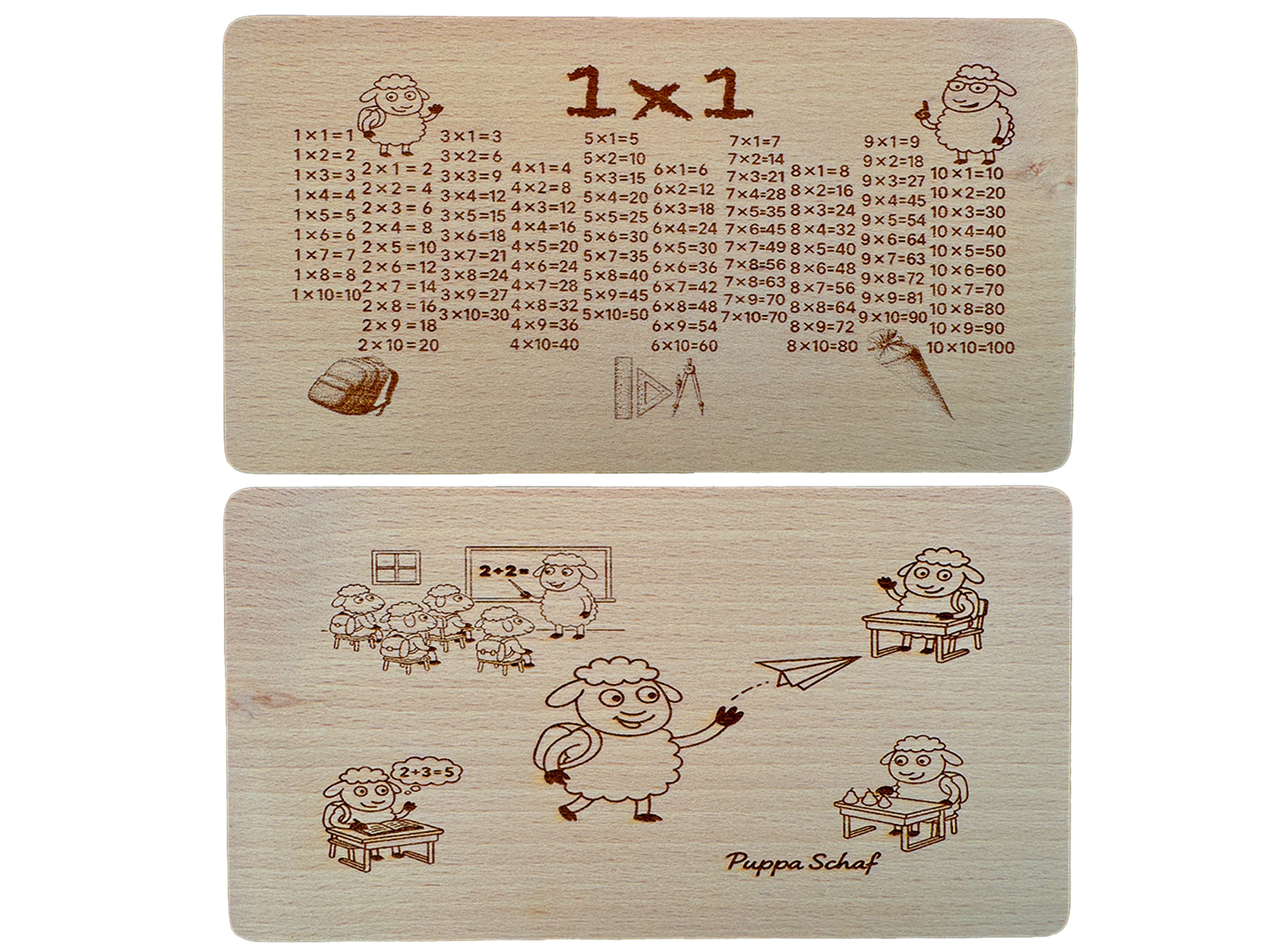 Frühstücksbrettchen mit Schaf-Motiv auf einer Seite und 1x1 auf der anderen schafft einen spielerischen Akzent bei jeder Mahlzeit.