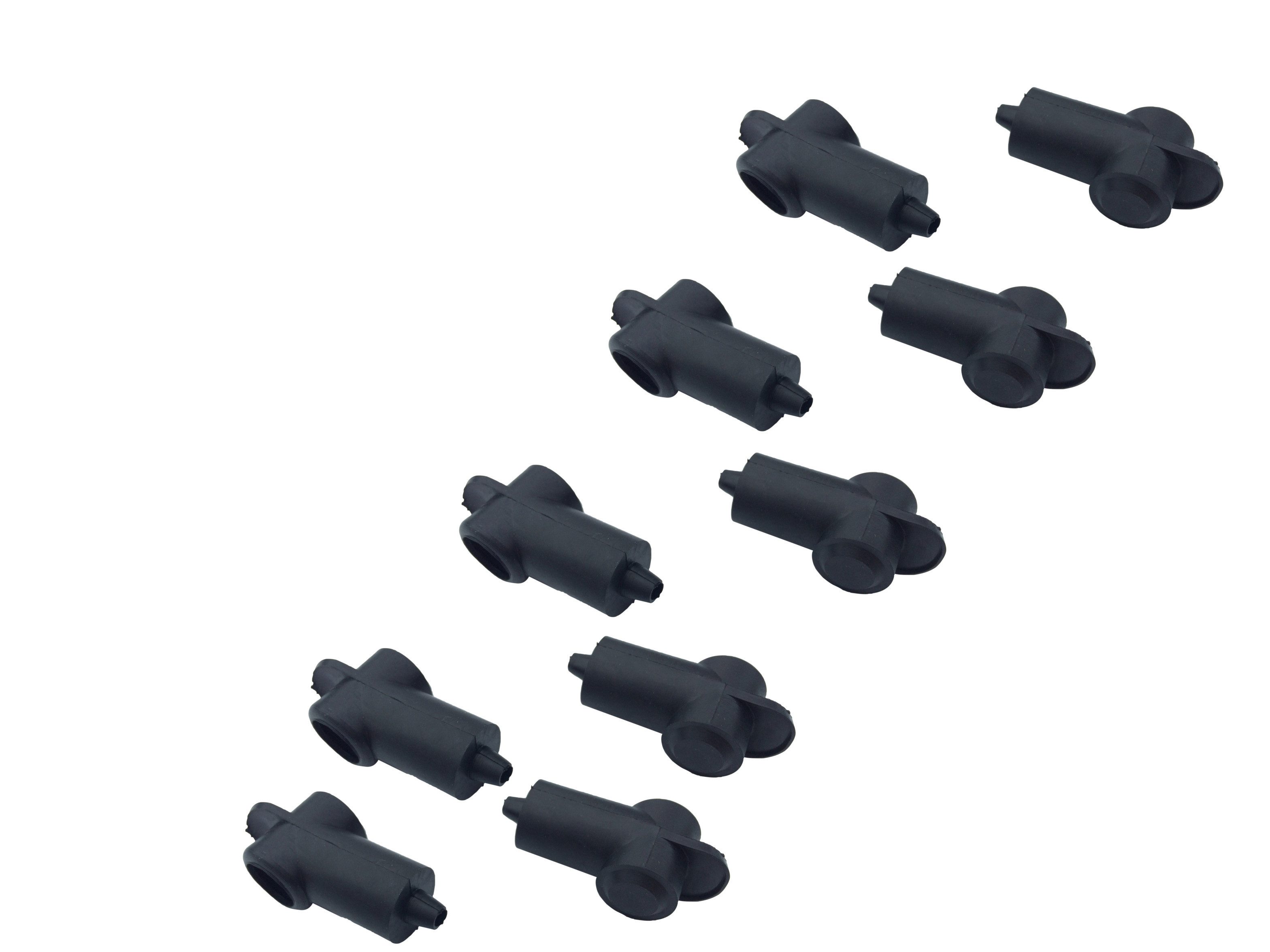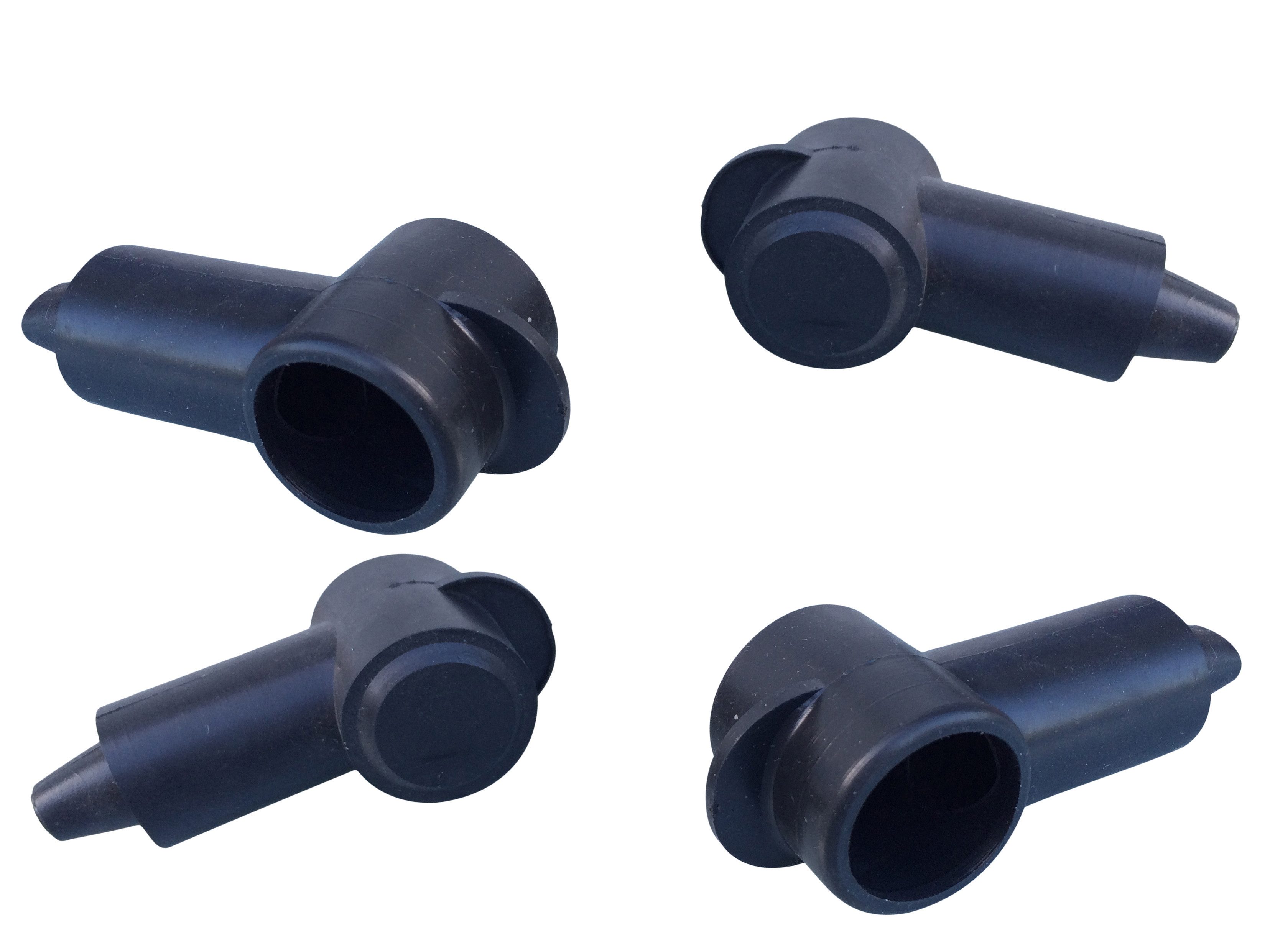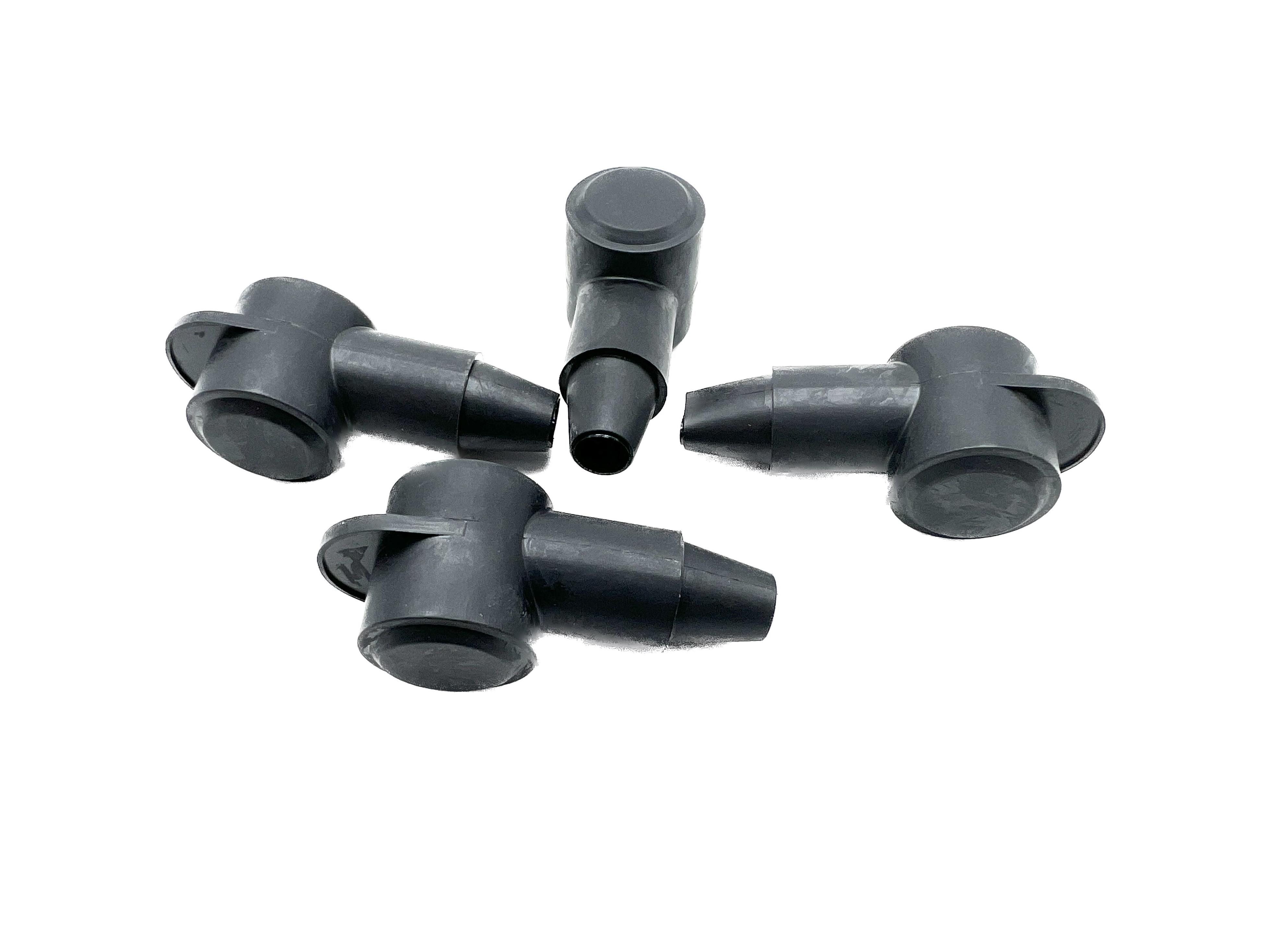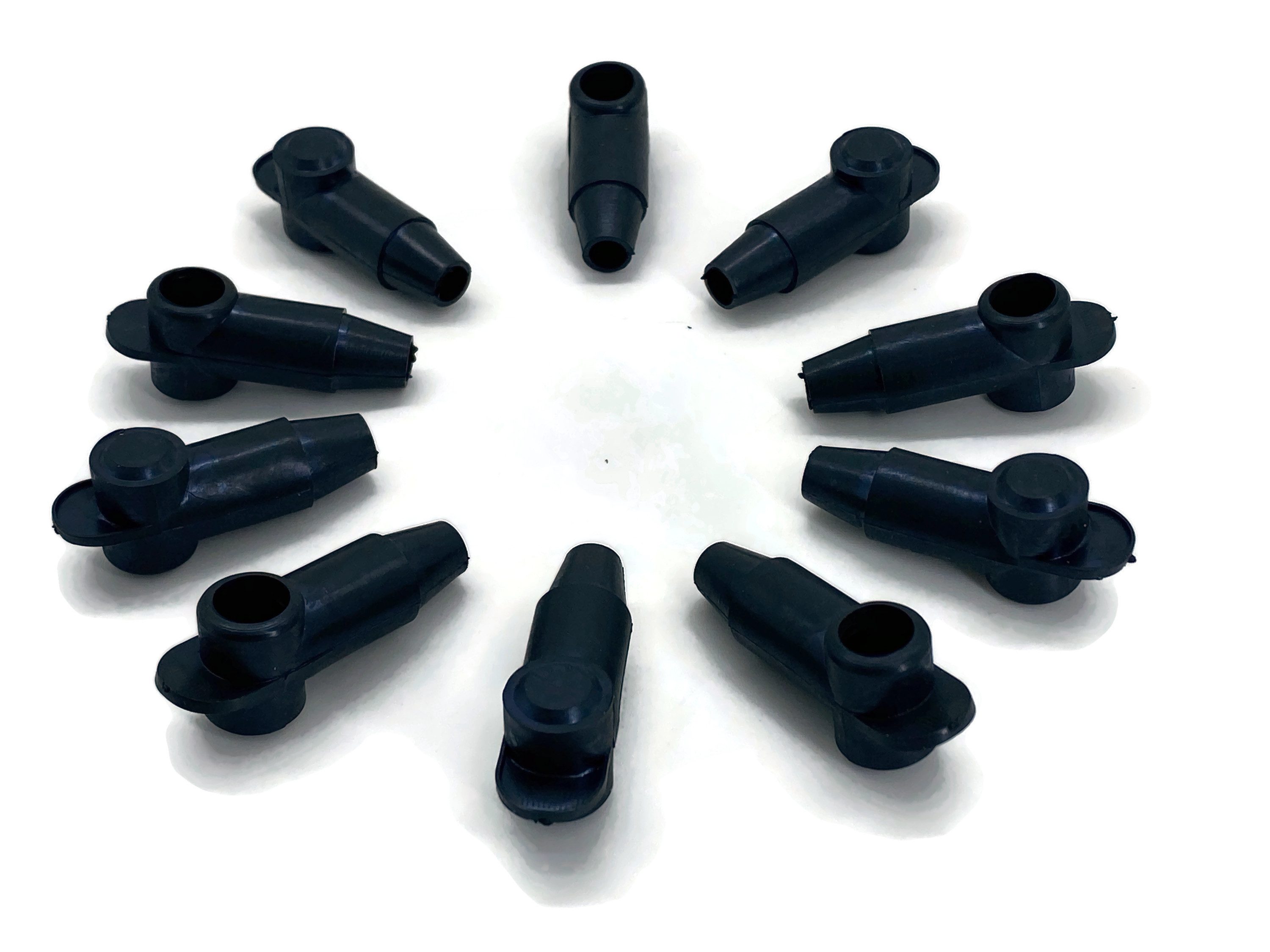 Polschutzkappe in Schwarz, konisch zulaufende Kabeldurchführung schützt Ringkabelschuhe vor Beschädigungen und Schmutz.