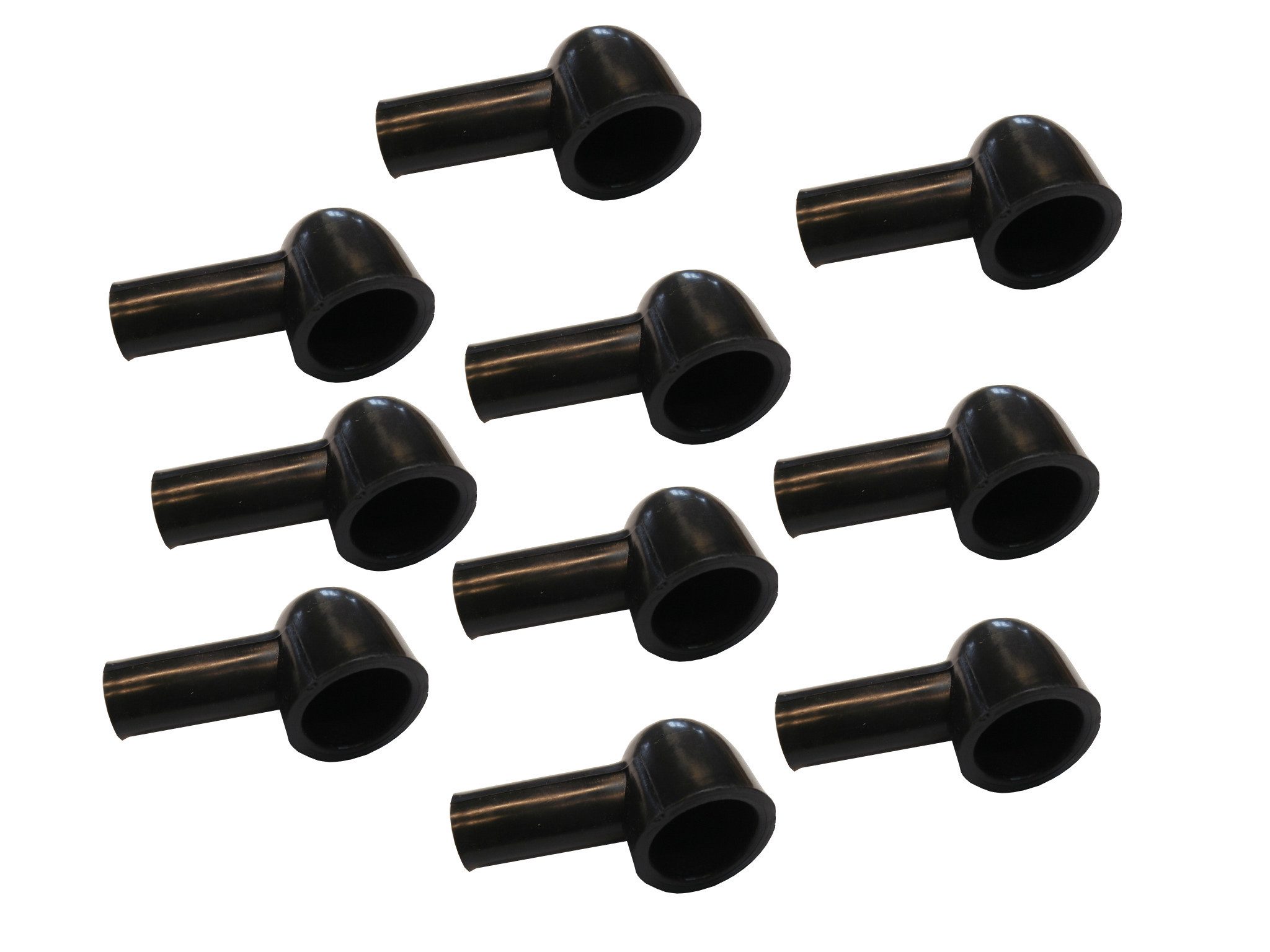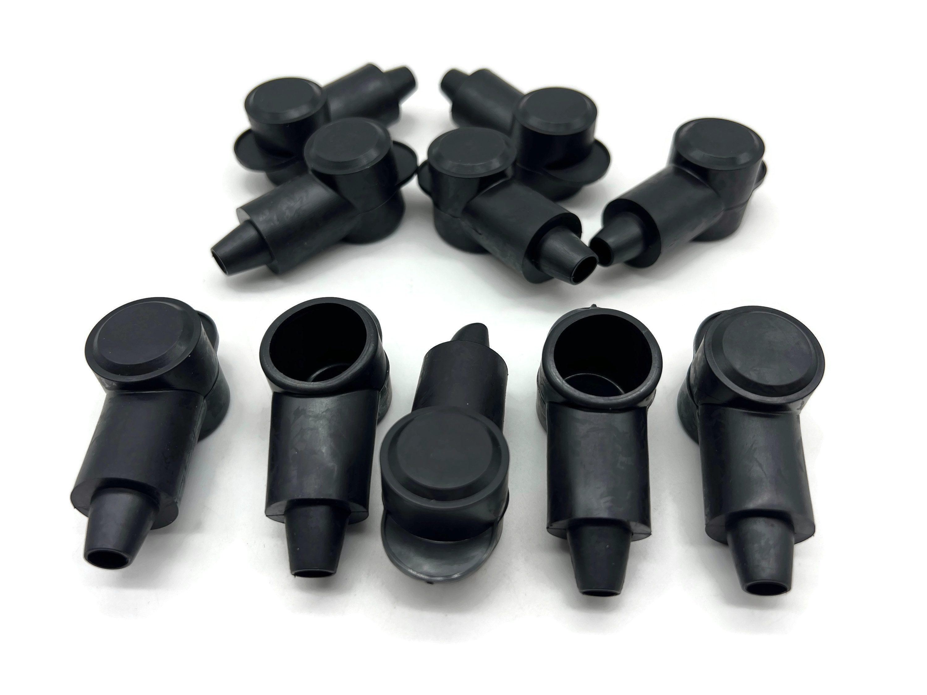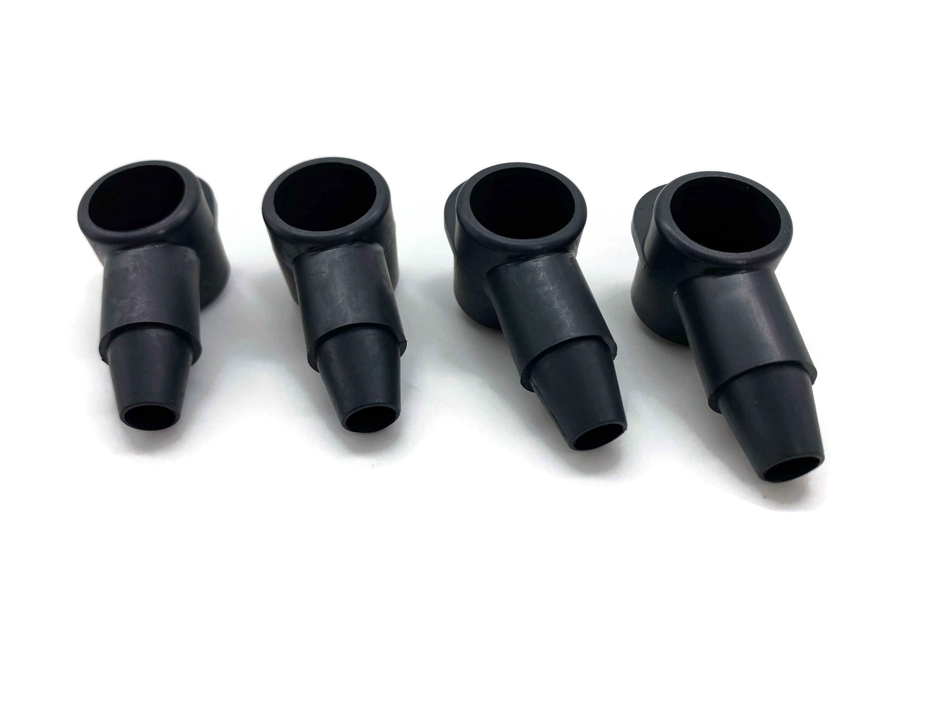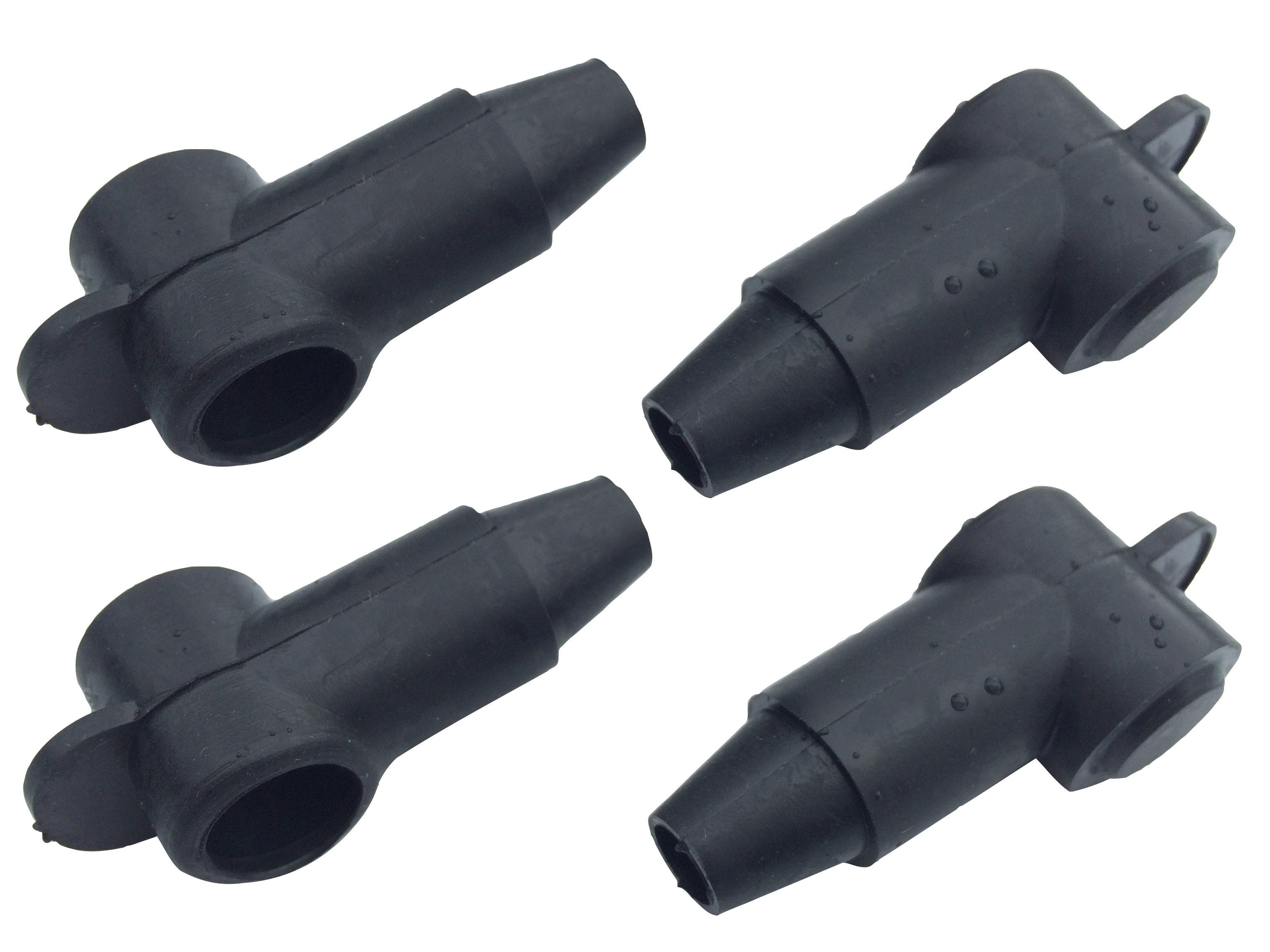 Polschutzkappe in Schwarz, konisch zulaufende Kabeldurchführung schützt Ringkabelschuhe vor Beschädigungen und Schmutz.