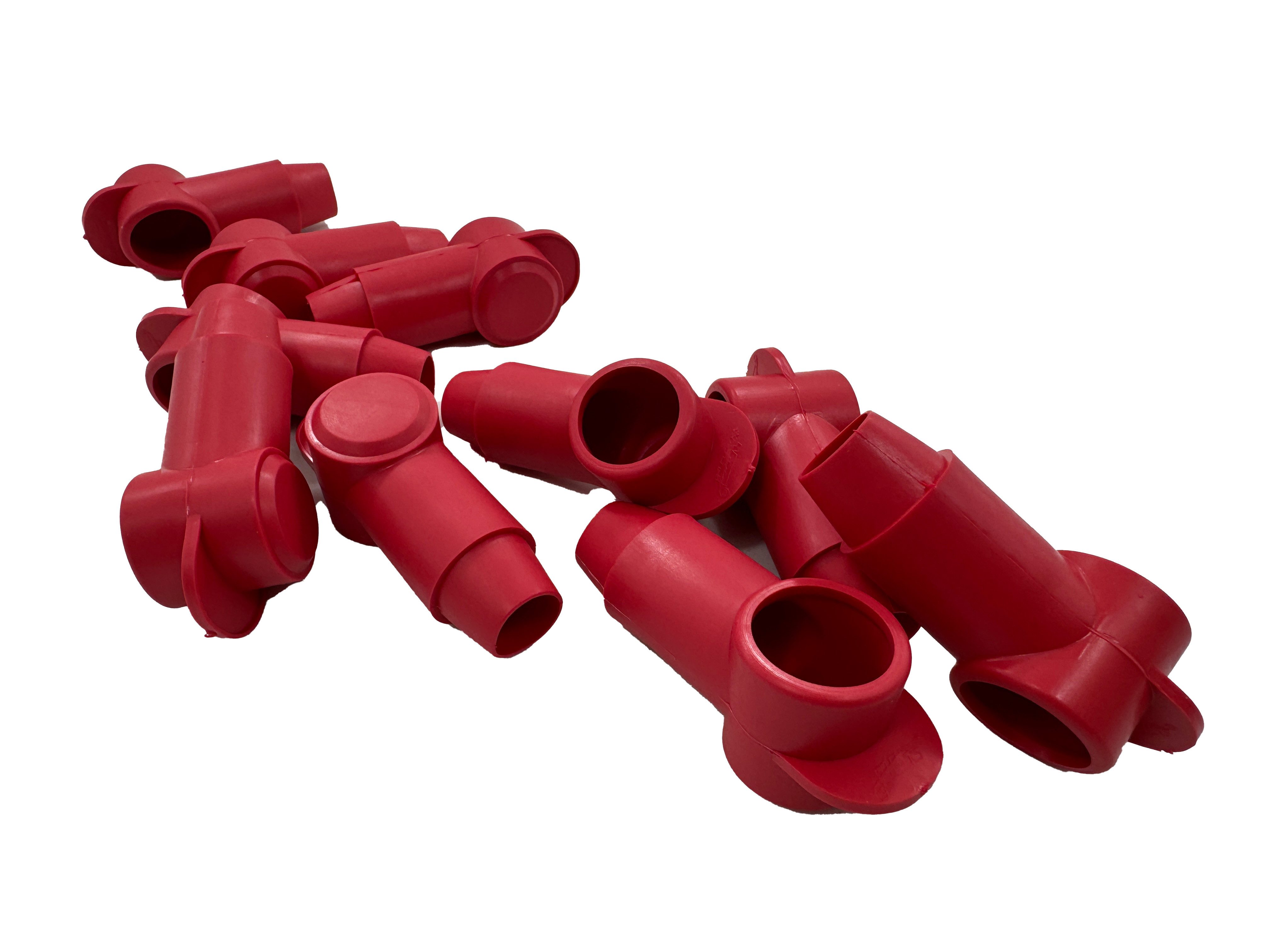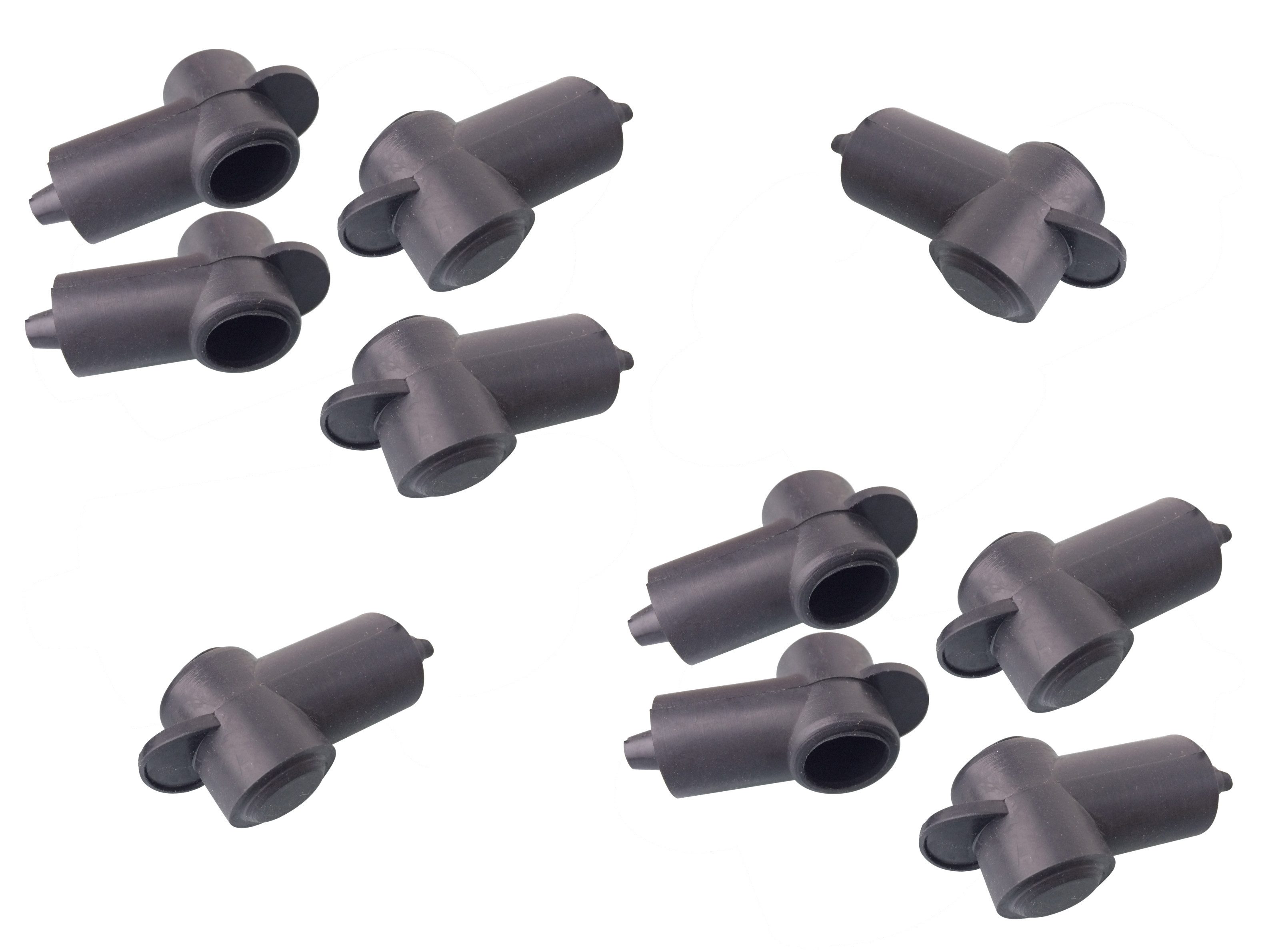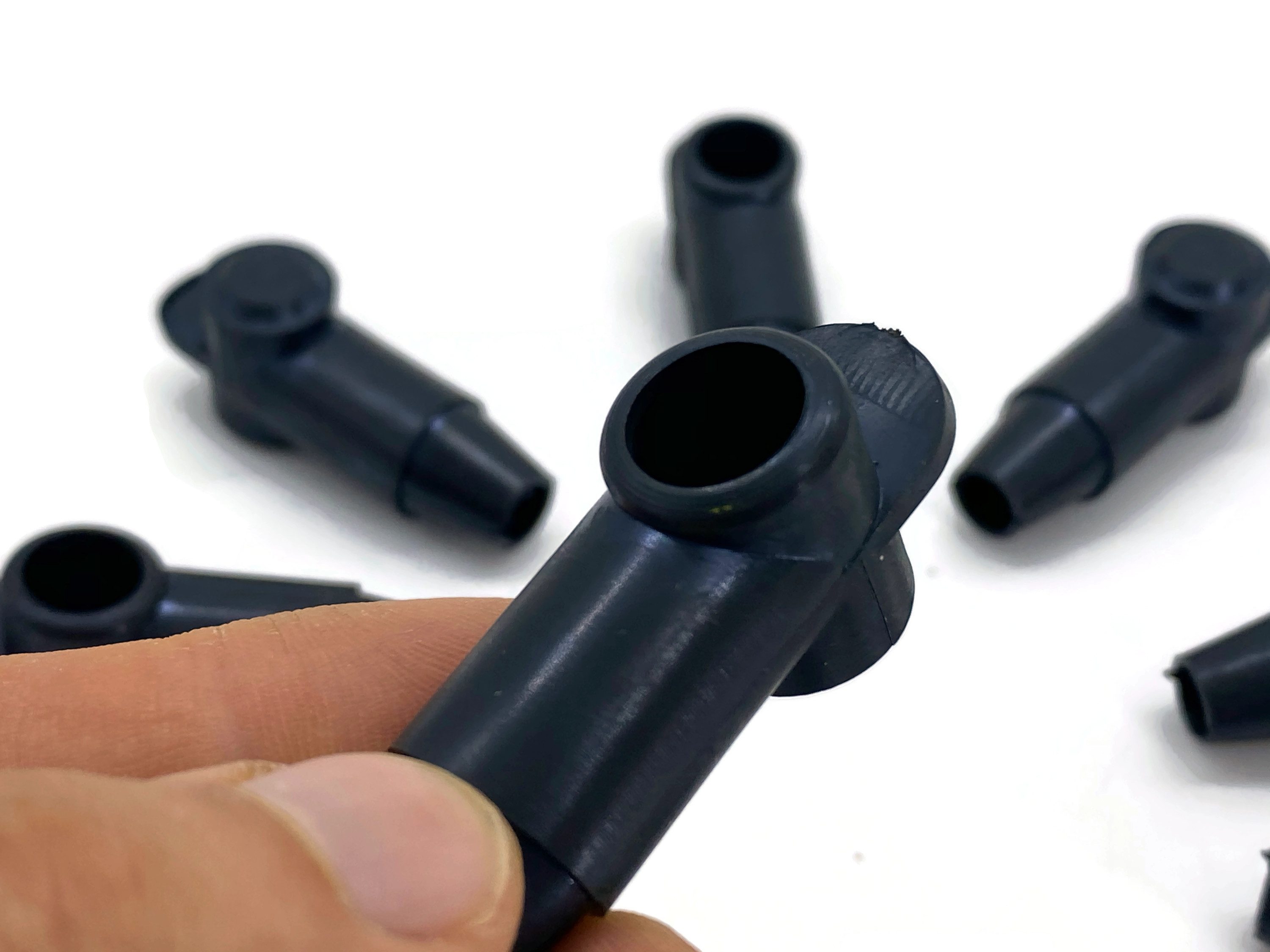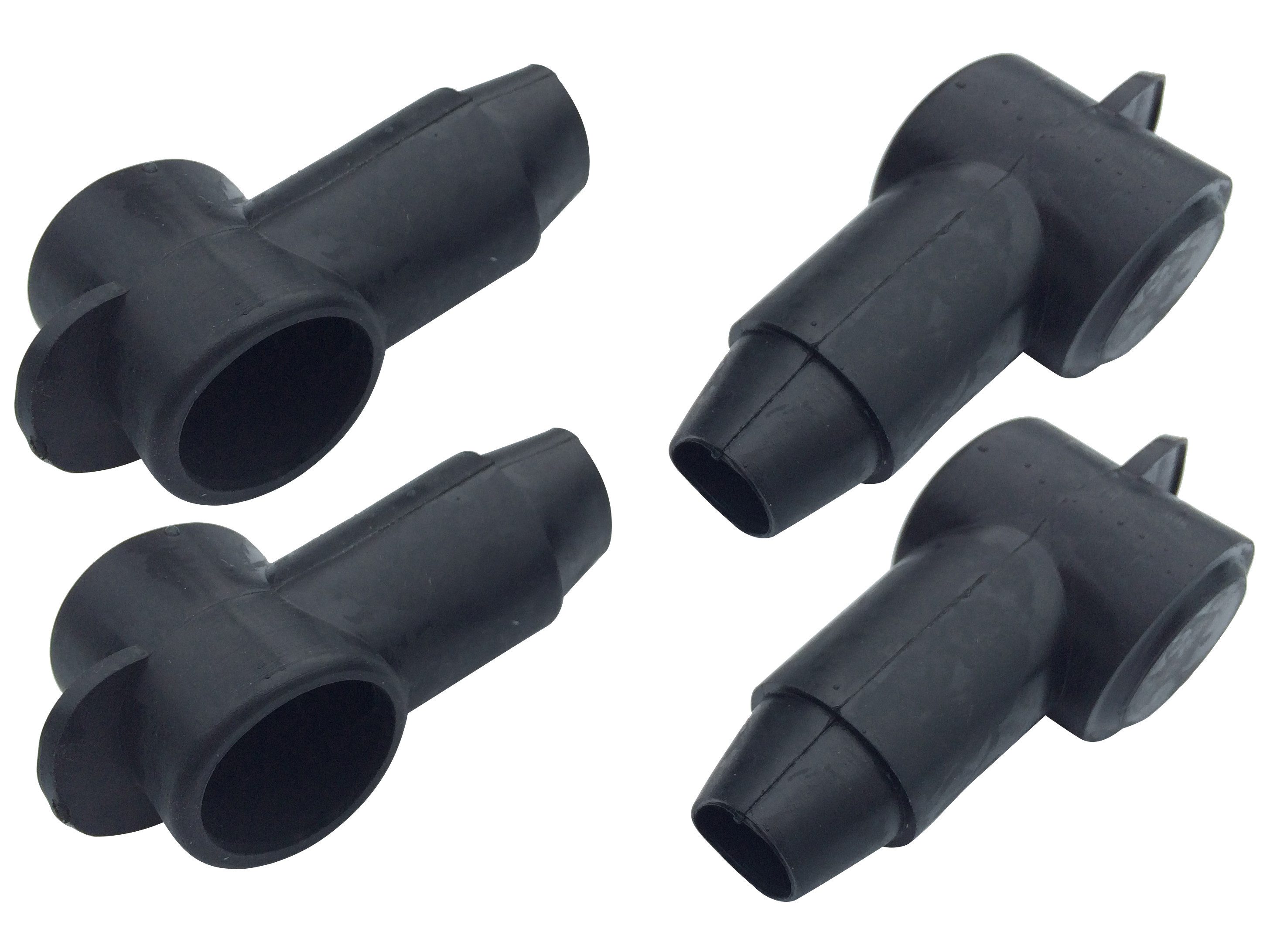 Polschutzkappe in Schwarz, konisch zulaufende Kabeldurchführung schützt Ringkabelschuhe vor Beschädigungen und Schmutz.