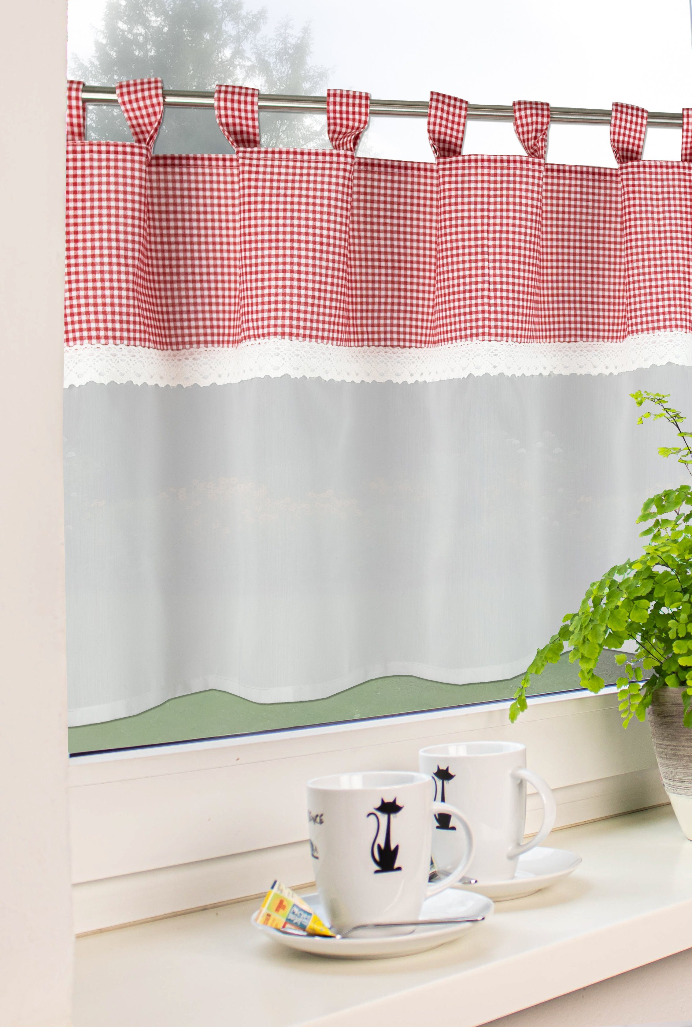 Karierter Deko in rot und weiß, blickdicht, mit weißem Batist, halbtransparent