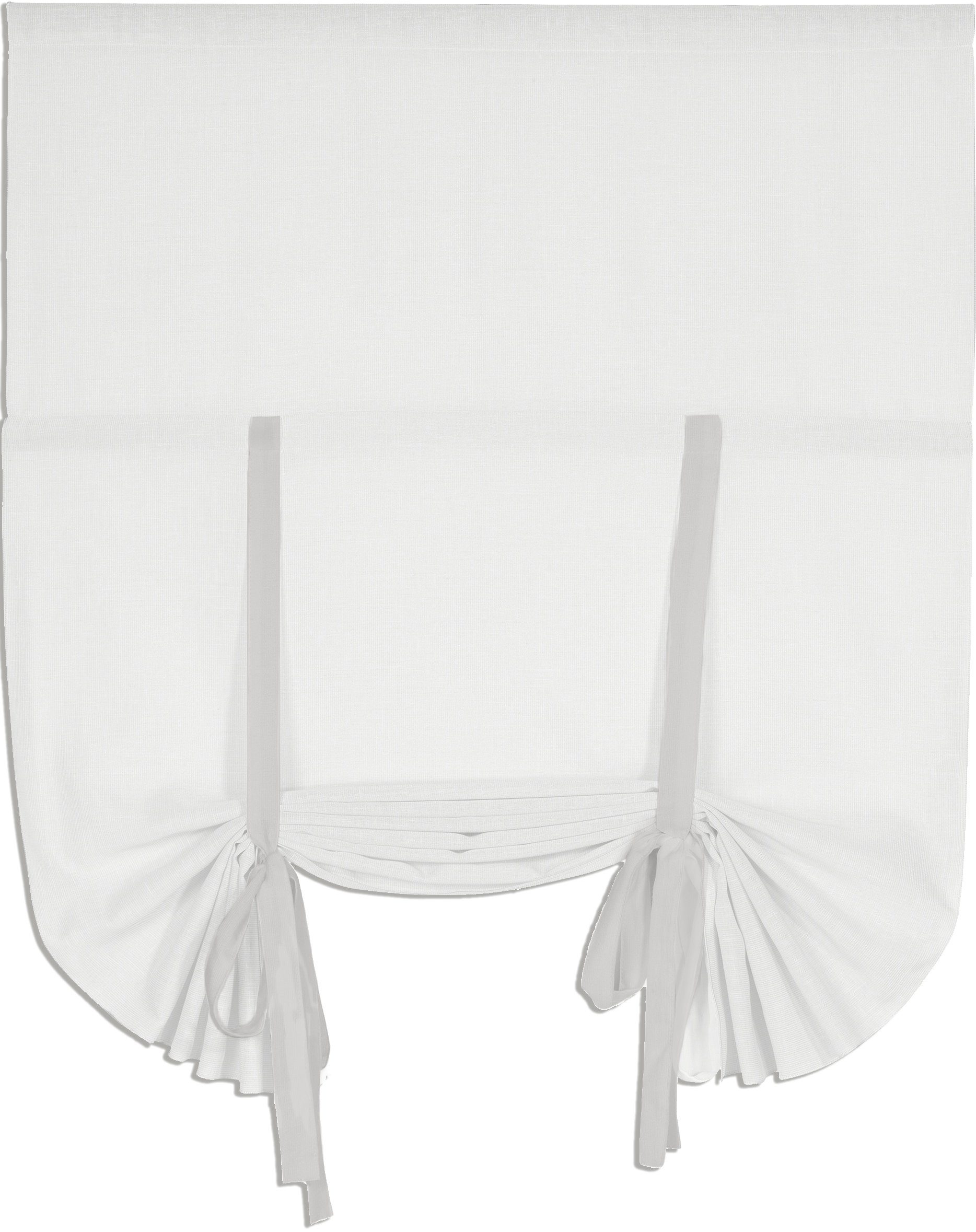 Die Küchengardine kann mit Hilfe der Bindebändern auf die gewünschte Длина hochgerafft werden.