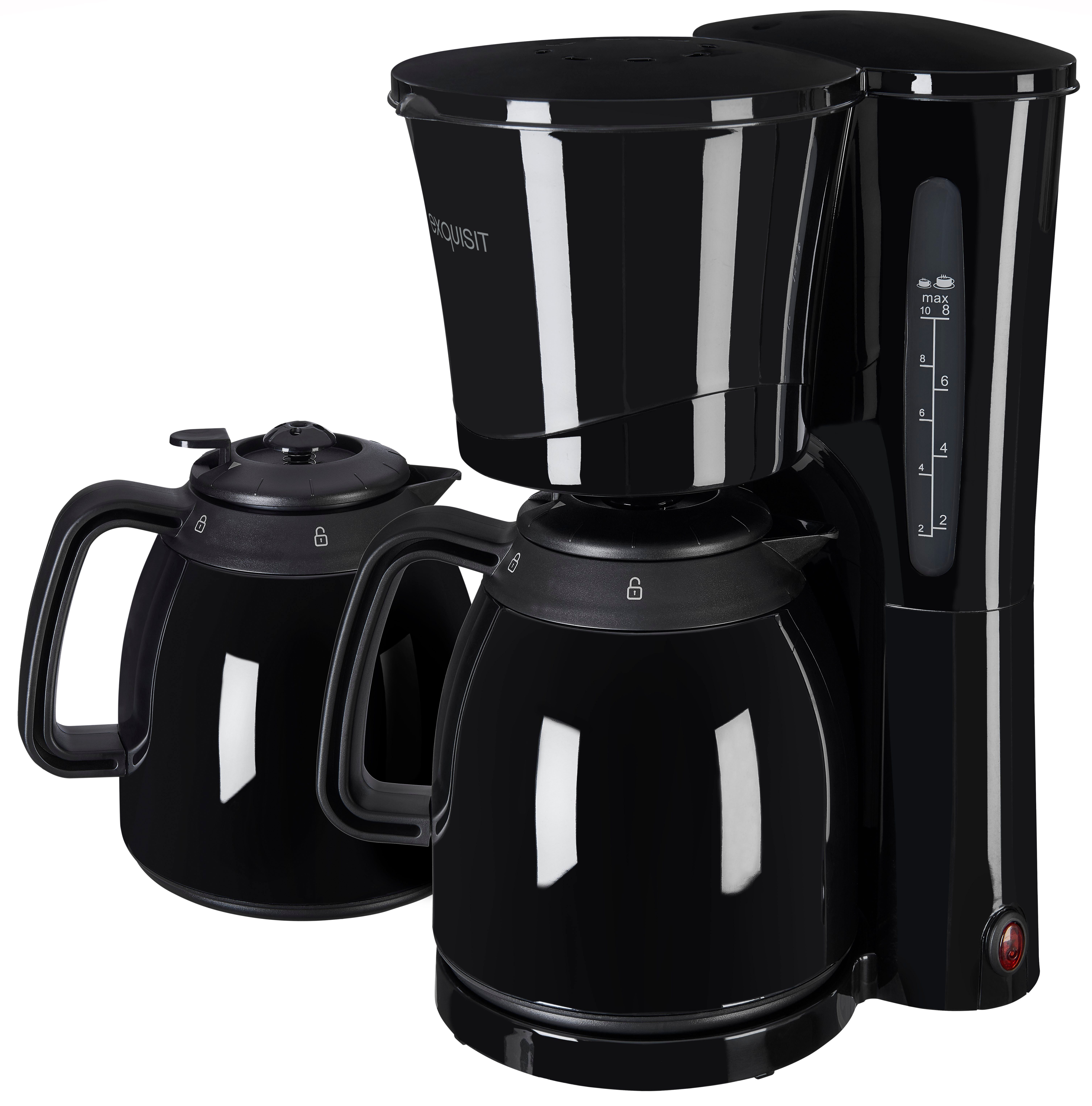 Впередe Vorteile | Ausgestattet mit 870 Watt Leistung und einem 1,0 Liter Wassertank brüht sie innerhalb kurzer Zeit bis zu 10 Tassen aromatischen Filterkaffees für einen wachen Start in den Tag. Der Wasserstand kann durch die eingelassenen Fenster und den aufgedruckten Skalen jederzeit ohne Anstrengungen abgelesen werden. Die Thermokannen halten den Kaffee länger heiß und aromatisch. Die mitgelieferte zweite Thermokanne bietet Ihnen großes Volumen und ist praktisch für eine Party mit mehreren Gästen. Leuchtender An-/Ausschalter, für schnelle Erkennung, wann die Maschine eingeschaltet ist. Automatische Abschaltung nach dem Brühvorgang. Tropf-Stopp-Funktion - verhindert den Tropfen beim Entnehmen der Kanne und somit sorgt für ein sauberes Kaffeebrühen. |