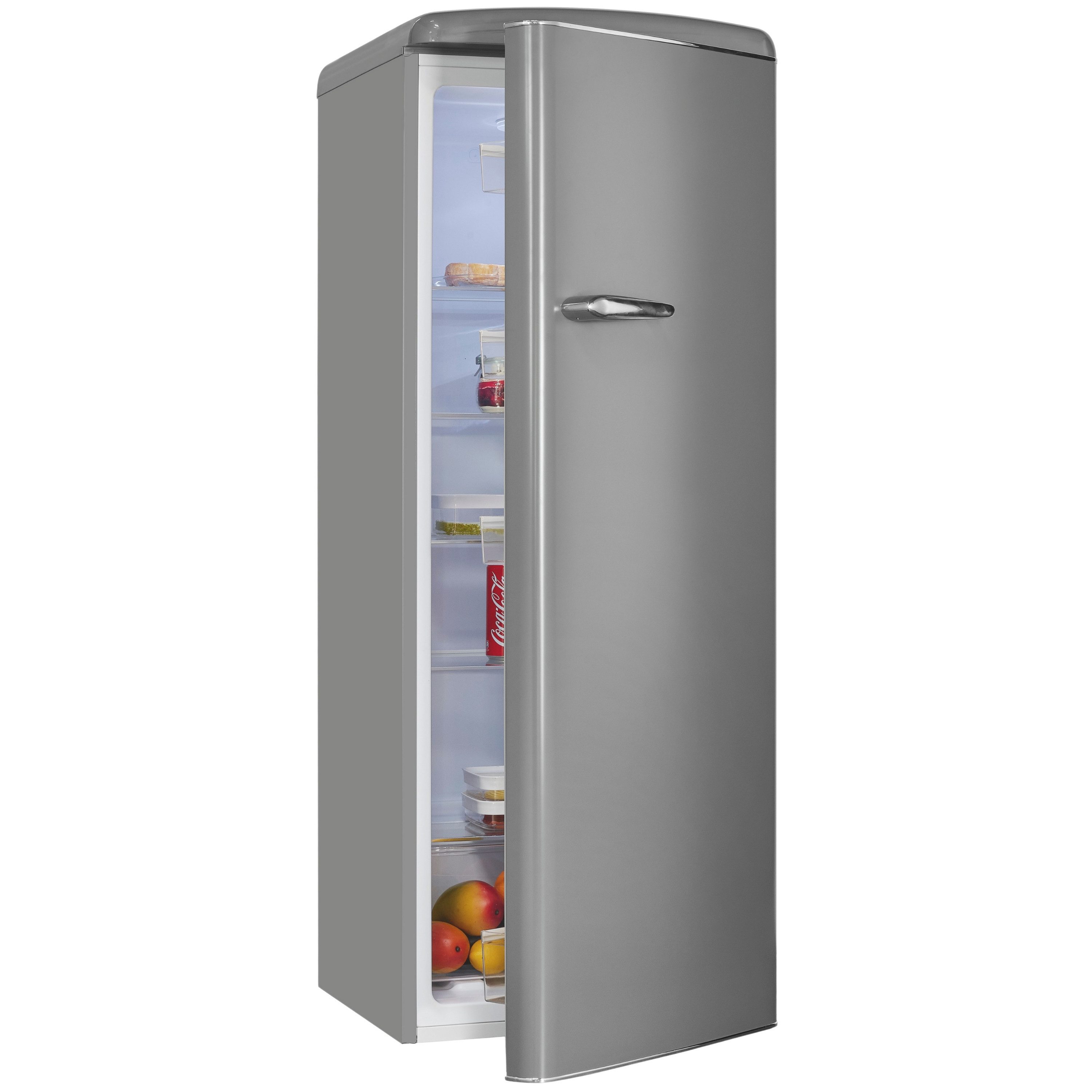 Ausstattung | Retro-Kühlschrank: 5 Glasablagen 1 Gemüseschublade 4 Türablagen 1 Flaschenhalter |