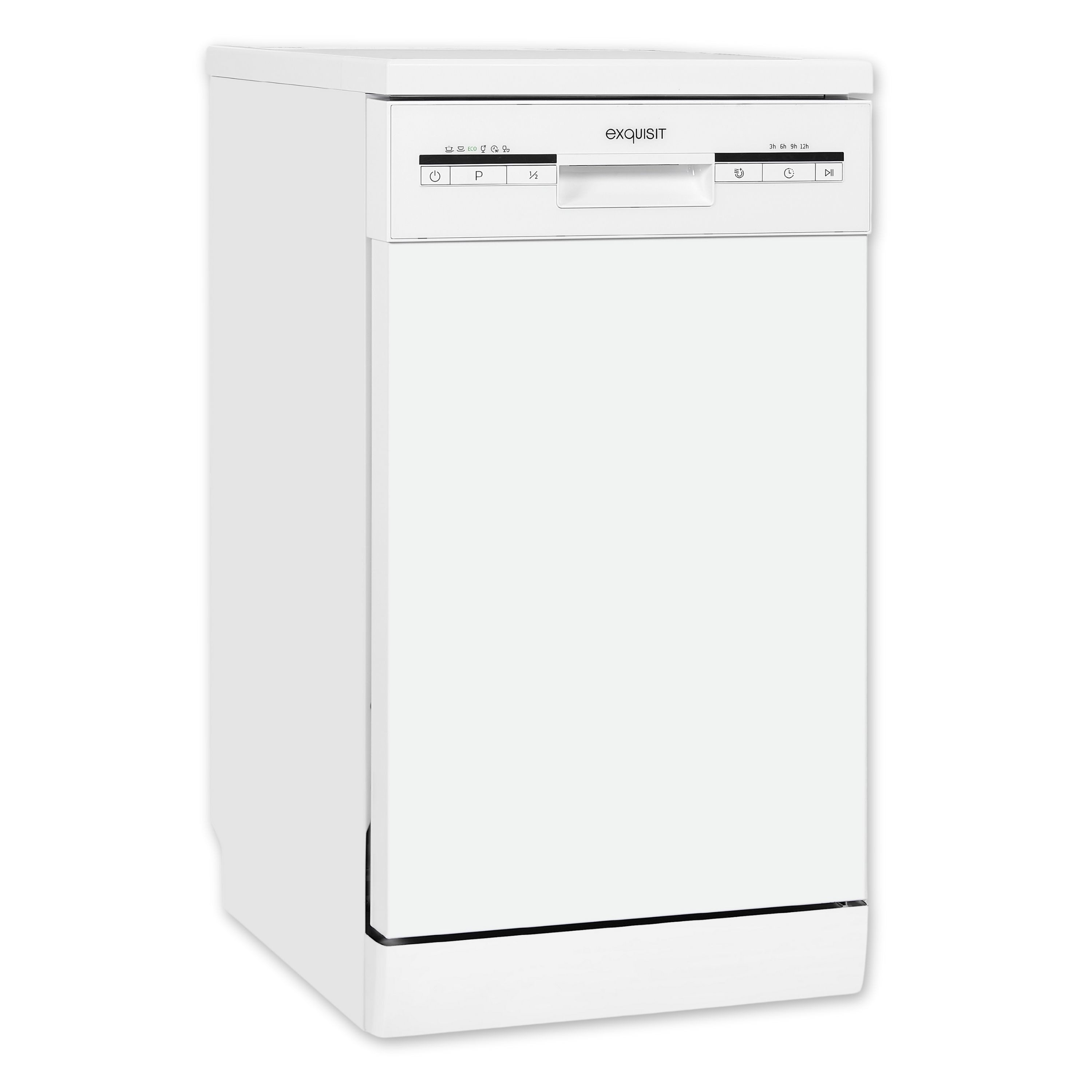 Der GSP9109-030E von exquisit ist ein Standgeschirrspüler. Durch seine Abmessungen von 44,8 x 84,5 x 60 cm (BxHxT) ist der Standgeschirrspüler extra schmal. Das Gerät ist in nahezu jede Einbauküche integrierbar. Mit einer Kapazität von 9 Maßgedecken ist der Geschirrspüler für Haushalte bis zu drei Personen definitiv zu empfehlen. Mit der Startzeitvorwahl lässt sich vorab bestimmen, zu welchem Zeitpunkt das ausgewählte Programm starten soll. Der Geschirrspüler ist eine absolut verlässliche Hilfe im Haushalt. Diejenigen, die einen funktionalen und ausdauernden Geschirrspüler suchen, liegen hier genau richtig.