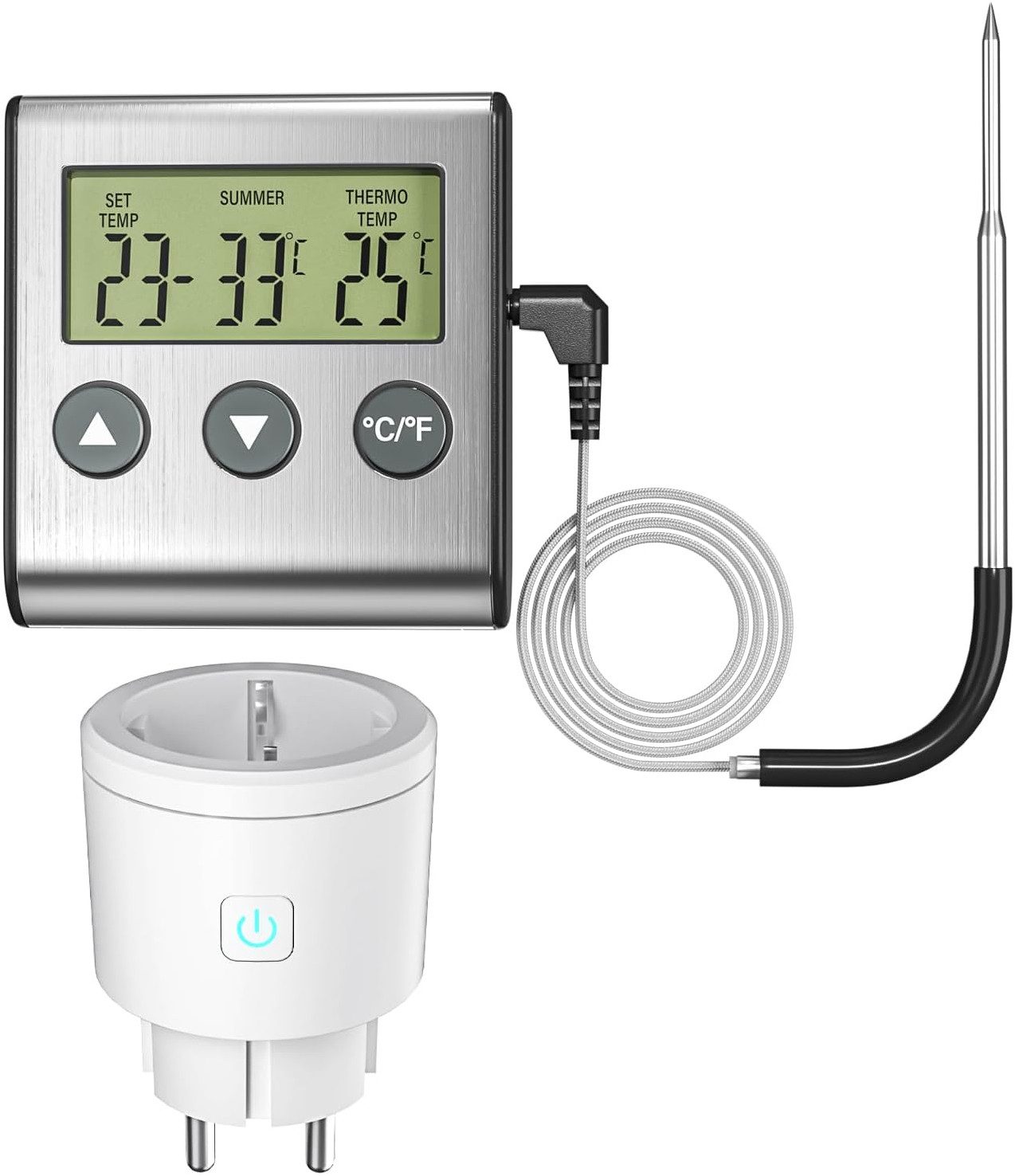 Der Thermostat-Steckdose besteht aus hochleitfähigem Kupferblech und flammhemmendem PC-Material, mit einem Laststrom von 16A und einer Spannung von AC 240V, was hocheffizient und sicher zu betreiben ist. Das Edelstahl Material von Schaltkasten Oberfläche, Temperaturmessung Draht sind rostfrei und langlebig.
