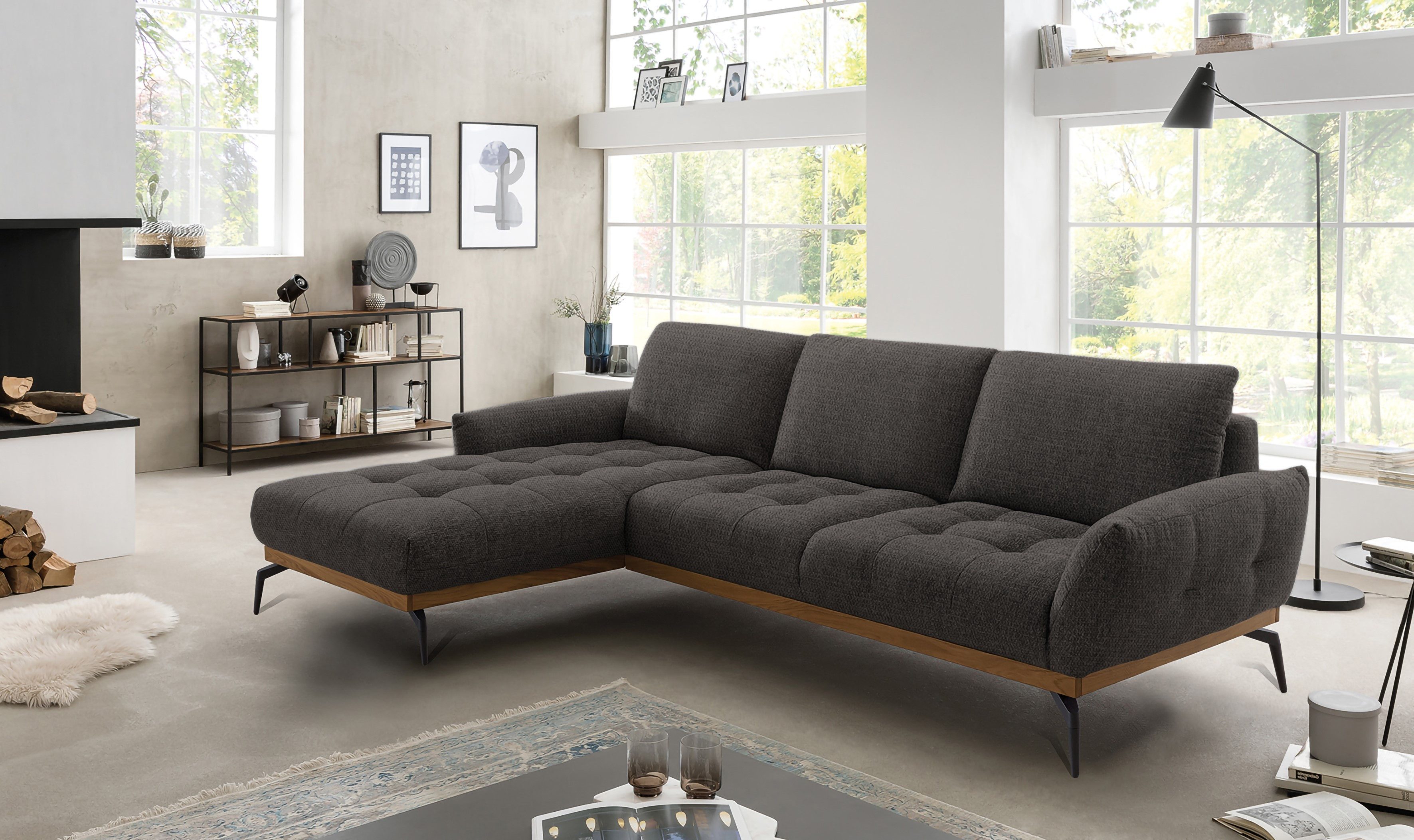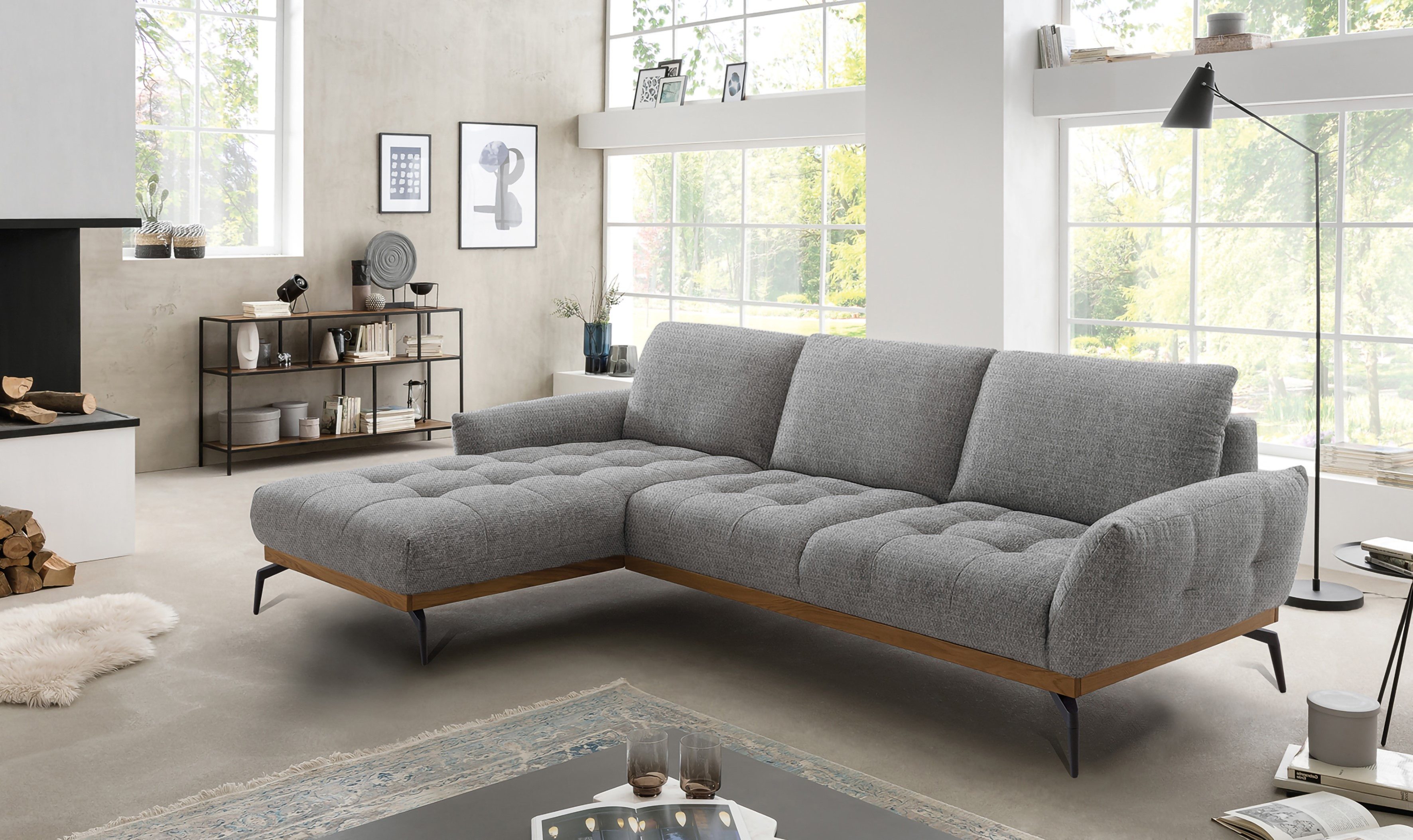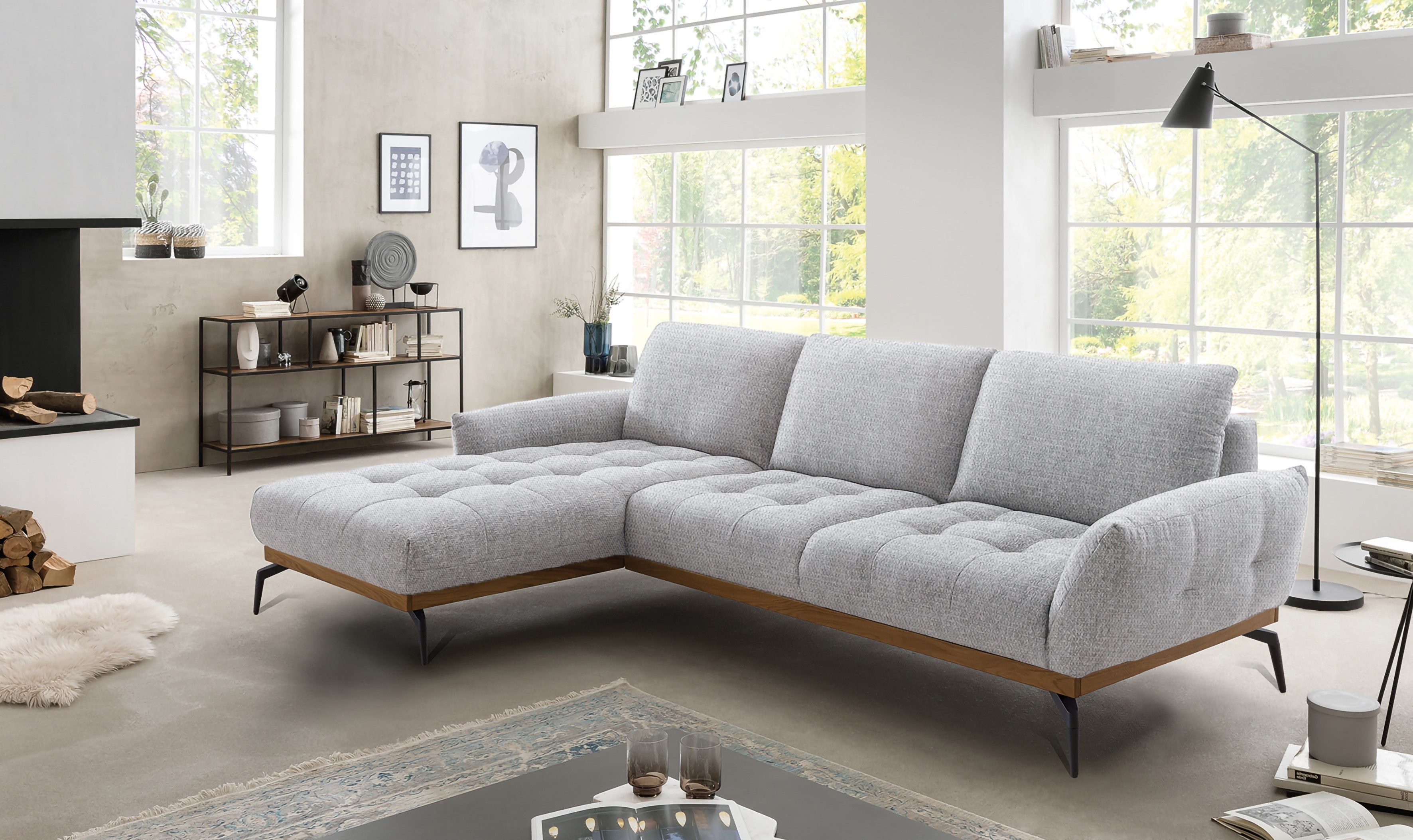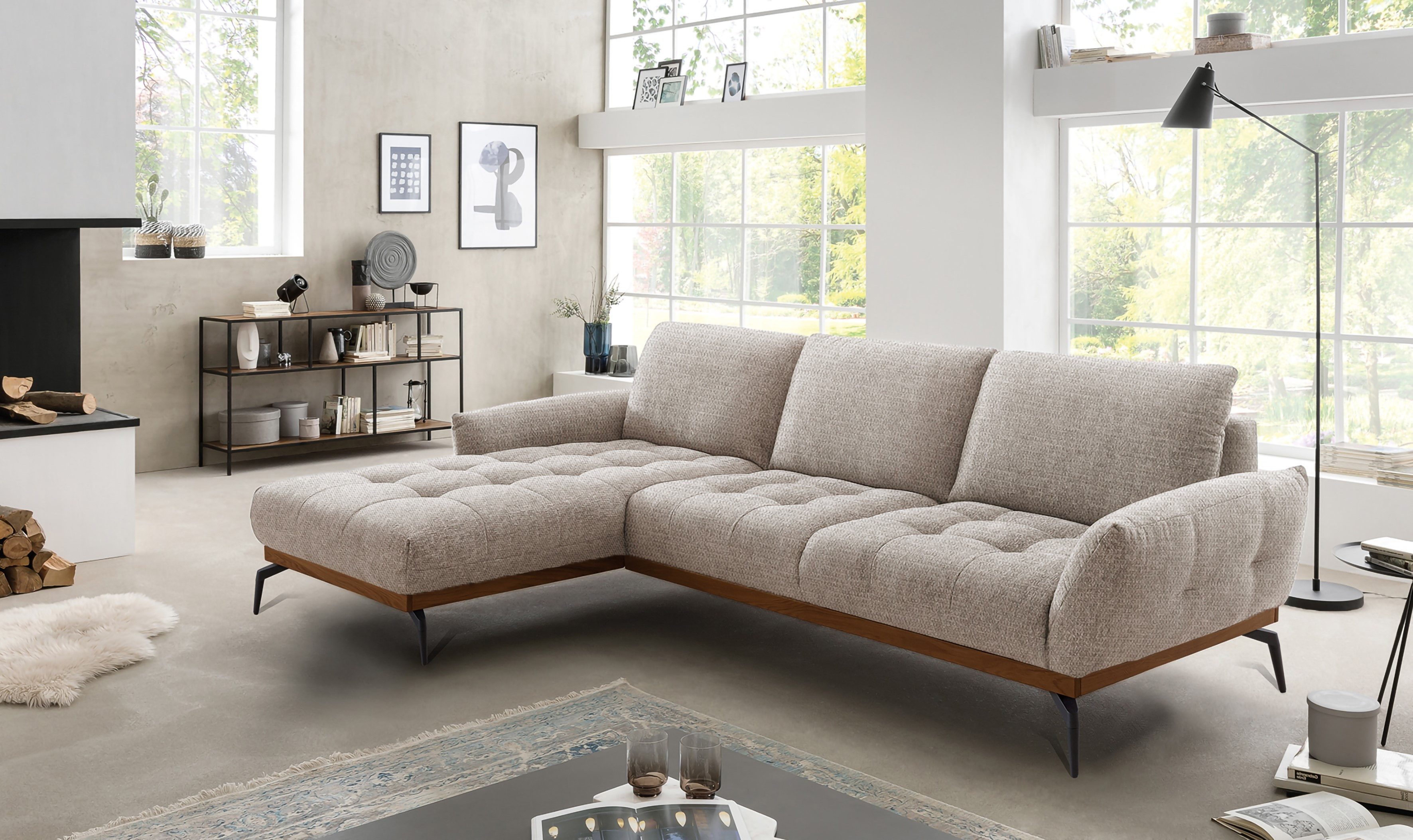 Sitzplatzmangel war gestern — das Ecksofa »NICEA, erstklassiger Komfort, tolle Details, Holzsockel in eiche geölt« von exxpo - sofa fashion.