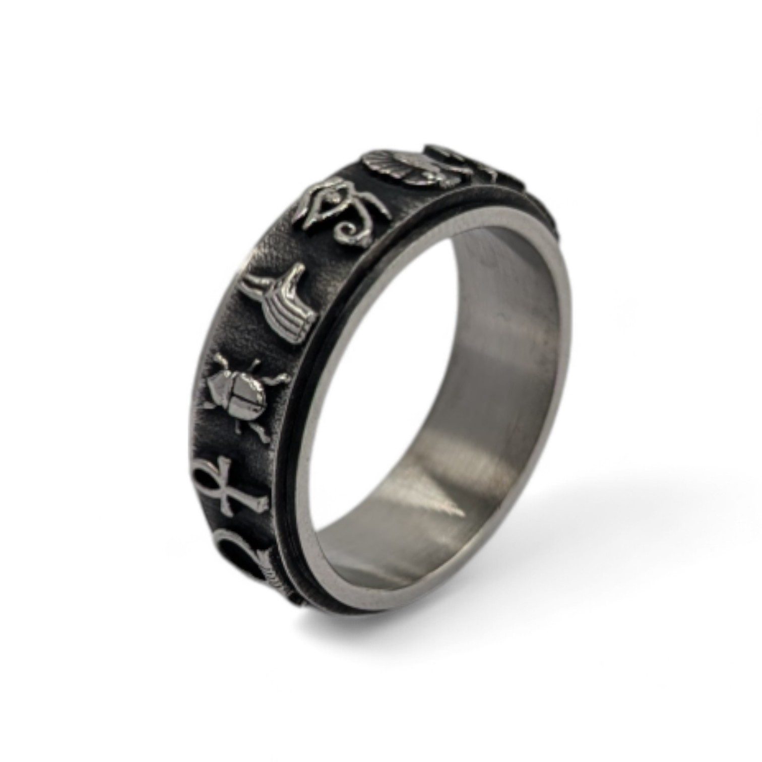 Anti Stress Fidget Ringe in verschiedenen Farben und US Größen. Motiv Ägyptisches Hieroglyphen. Alphabet zum drehen.