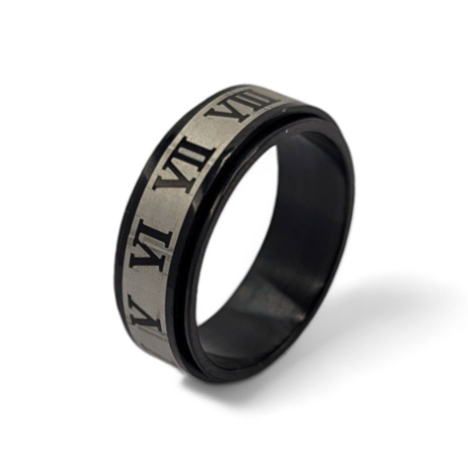 Entspannung und Eleganz vereint: Unser Anti Stress Ring mit römischen Zahlen in Schwarz-Grau.