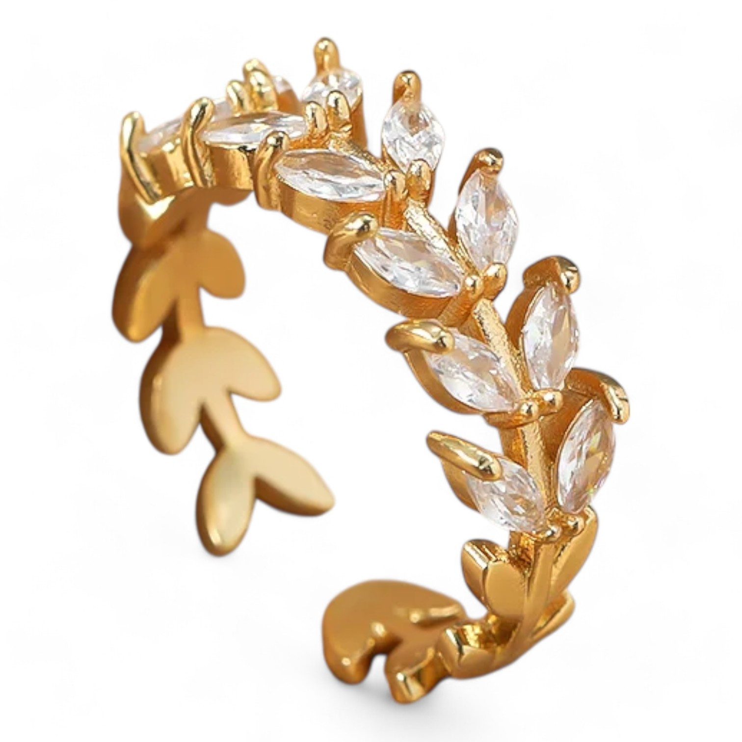 Größenverstellbarer offener Lorbeerkranz Ring mit Zirkonia Steinen weiß