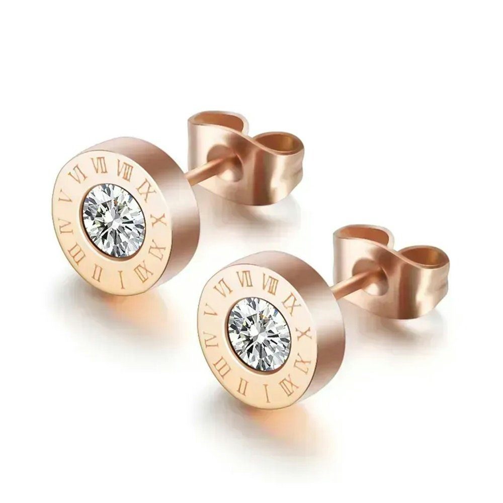 Tauchen Sie ein in die Welt subtiler Eleganz mit unseren kleinen Ohrsteckern, die durch ihre raffinierte Gestaltung mit römischen Zahlen und funkelnden Zirkonia-Edelsteinen bezaubern. Diese Ohrstecker sind aus hochwertigem Titanstahl gefertigt und stehen in den stilvollen Farboptionen Rosé, Gold und Silber zur Verfügung.