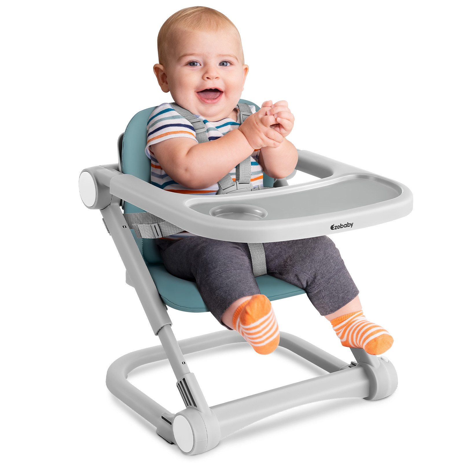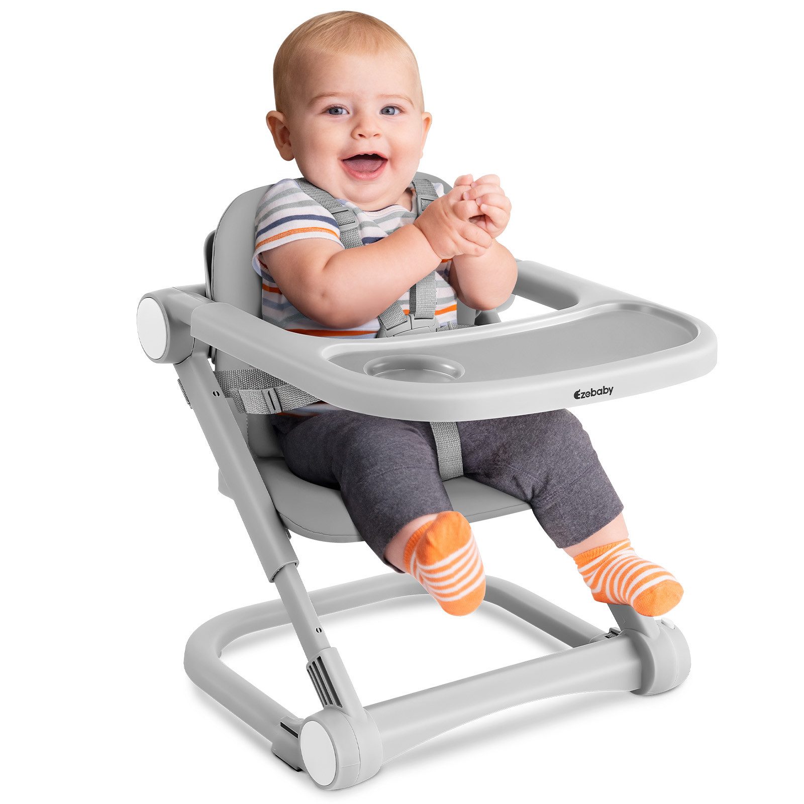 Vielseitig und praktisch – Der tragbare Kinderhochstuhl kann sowohl an einem Erwachsenenstuhl befestigt werden als auch als kleiner Hocker direkt auf dem Boden verwendet werden. Ideal für zu Hause, im Restaurant oder auf Reisen 5-fach höhenverstellbar – Die Sitzhöhe lässt sich in 5 Stufen anpassen, um sich den Bedürfnissen Ihres Kindes und verschiedenen Tischhöhen anzupassen. Das verstellbare Tischchen bietet 3 Höhenstufen für maximalen Komfort Optimale Sicherheit – Zwei stabile Gurte sichern den Hochstuhl an einem Erwachsenenstuhl, sodass eine feste und sichere Struktur entsteht. Der integrierte 5-Punkt-Sicherheitsgurt bietet besseren Halt als herkömmliche 3-Punkt-Gurte, sodass Ihr Baby sicher sitzt Kompakt und leicht – Mit nur 2,2 kg Gewicht und einer Dicke von nur 10 cm im gefalteten Zustand ist der Hochstuhl super leicht zu transportieren und lässt sich problemlos in einem Koffer oder einer Tasche verstauen. Ideal für Familien, die viel unterwegs sind. Einfache Reinigung – Der Stuhl ist mit einem leicht abwischbaren PU-Sitzpolster und einem abnehmbaren, spülmaschinenfesten Tablett ausgestattet. Der Stuhlrahmen besteht aus hochwertigem Kunststoff, der mit einem feuchten Tuch einfach zu reinigen ist. Keine versteckten Ecken, in denen Essensreste zurückbleiben könnten
