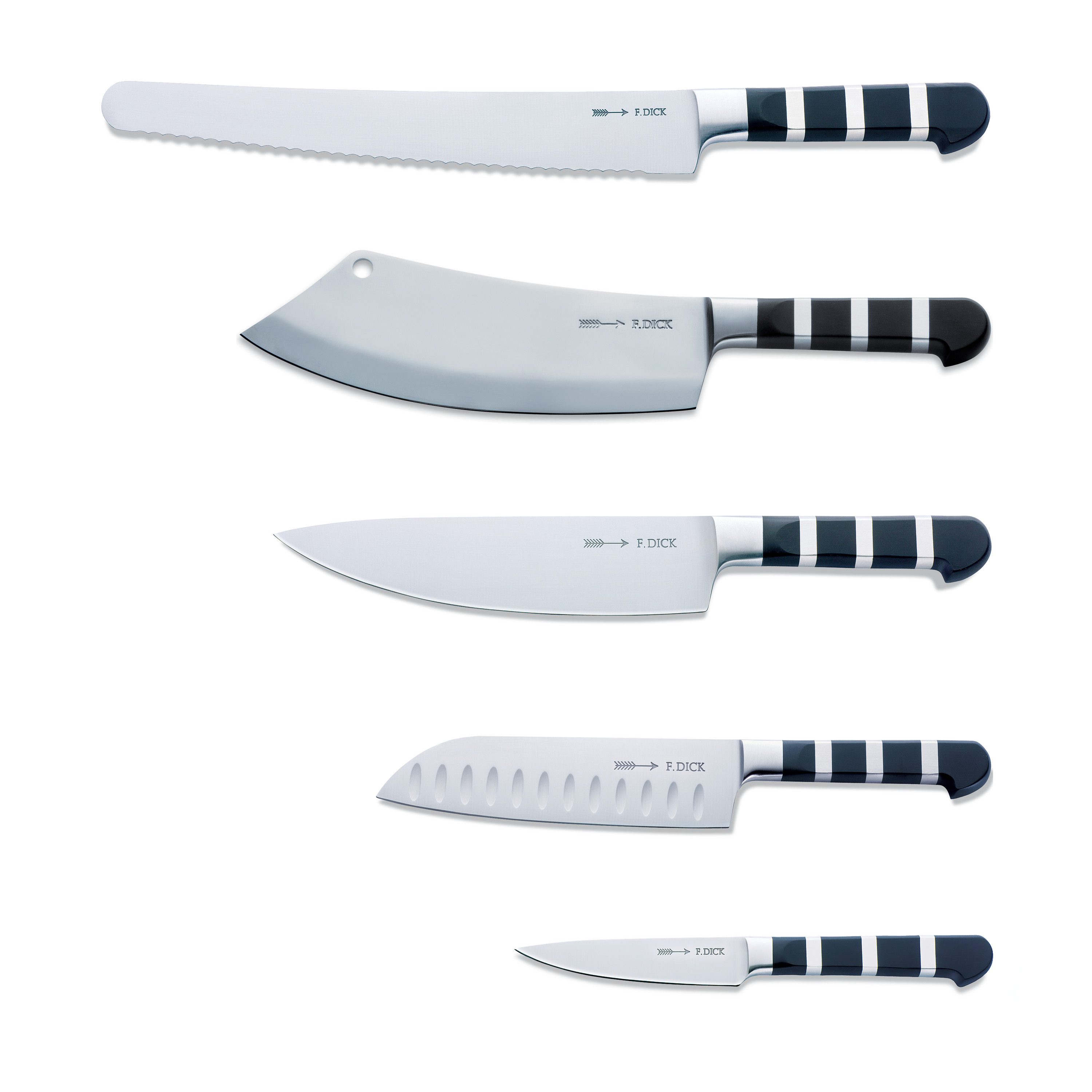 Die Design Serie 1905 verknüpft gekonnt Tradition und Moderne durch die Neuauflage eines historischen Designs. Im Jahr 1905 entwickelte Friedr. Dick eine Kochmesserserie mit massiven Zwingen, die die bisher üblichen Nieten ersetzten. Der Griff wechselt sich lückenlos mit dem hochwertigen und widerstandsfähigen Kunststoff ab und macht den Griff sowohl haptisch als auch optisch zu einem Erlebnis.