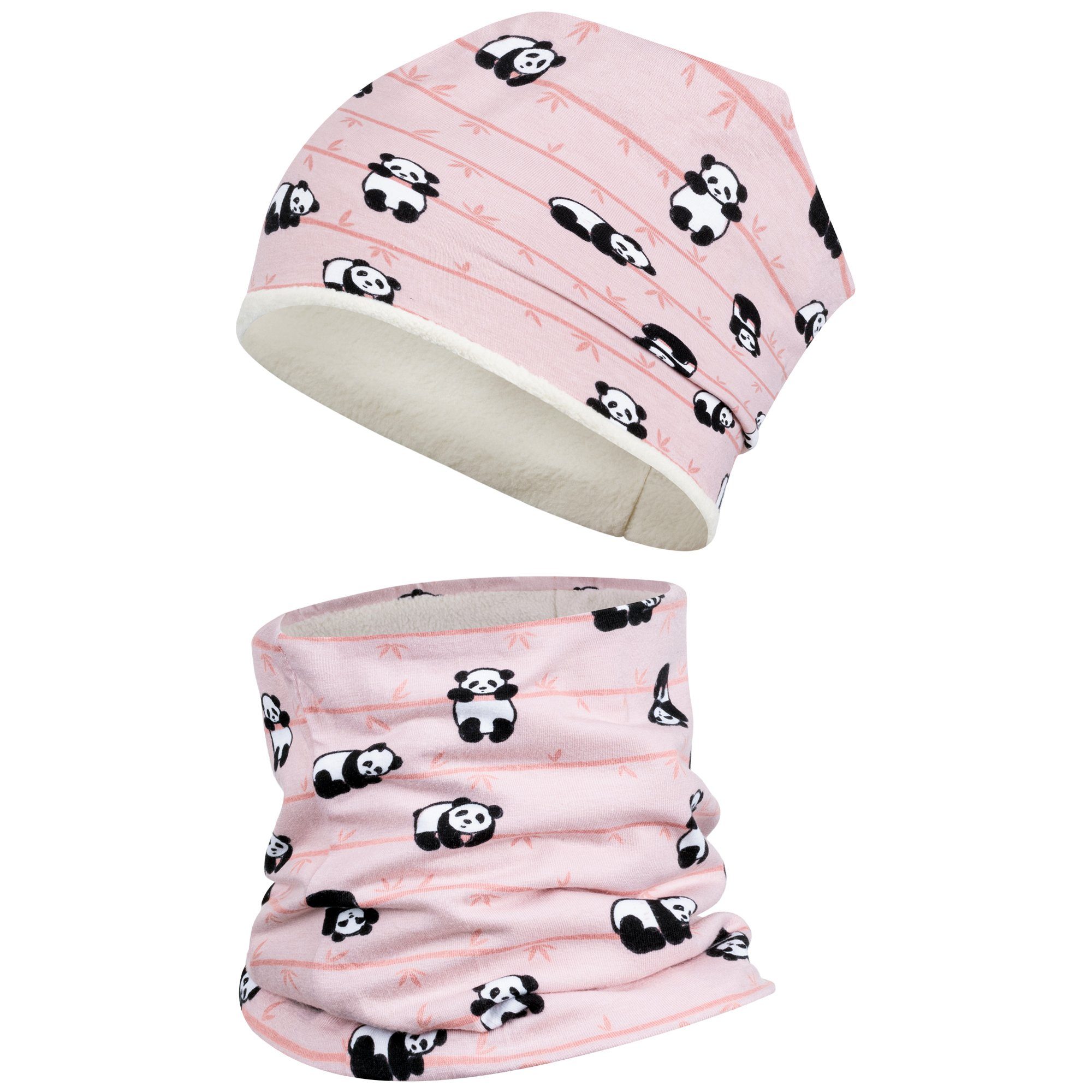 Sooo flauschig! Das Winterset bestehend aus Mütze sowie einem dazu passenden Schlauchschal und überzeugt mit einer sehr weichen, angenehmen Plüsch-Innenseite. Das angesagte Motiv im Allover-Print runden das Design ab. Die Kindermütze ist ideal für kalte Wintertage. Dank der Plüsch-Innenseite und der bequemen Passform bietet die Wintermütze ein angenehmes Tragegefühl. Sie schützt vor Wind und Kälte und wärmt die Ohren und die Stirn Ihres Kindes zuverlässig. Der passende Schlauchschal ist schnell angezogen, verutscht nicht und hält den Hals.