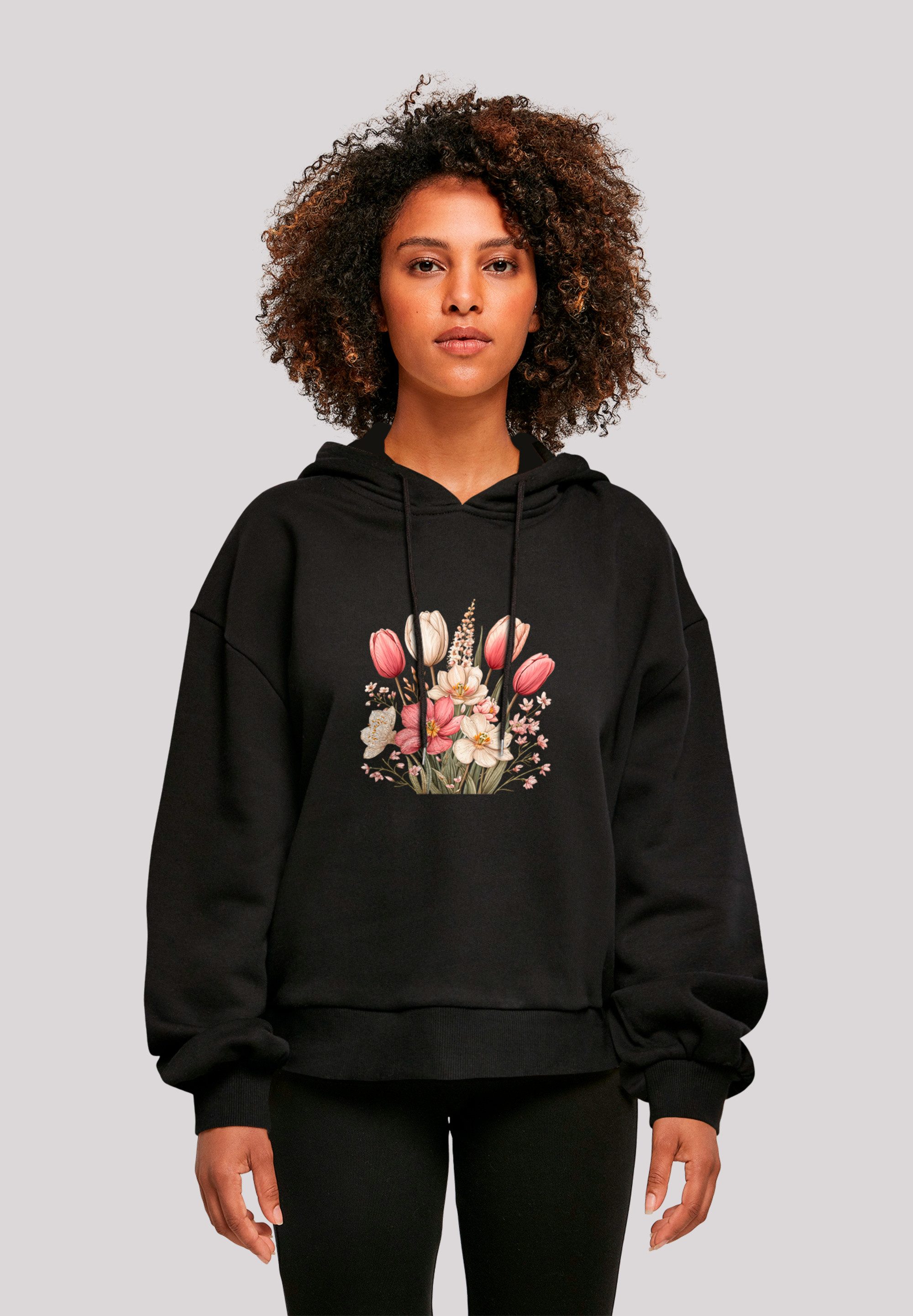 Frühling Valentinstag Ostern Hoodie. Gemütlicher Frauen Oversized Kapuzenpullover. Bequemer Oversized Cut. breite gerippte Bündchen und flauschige Kapuze. Pink & White Spring Flowers Bouquet