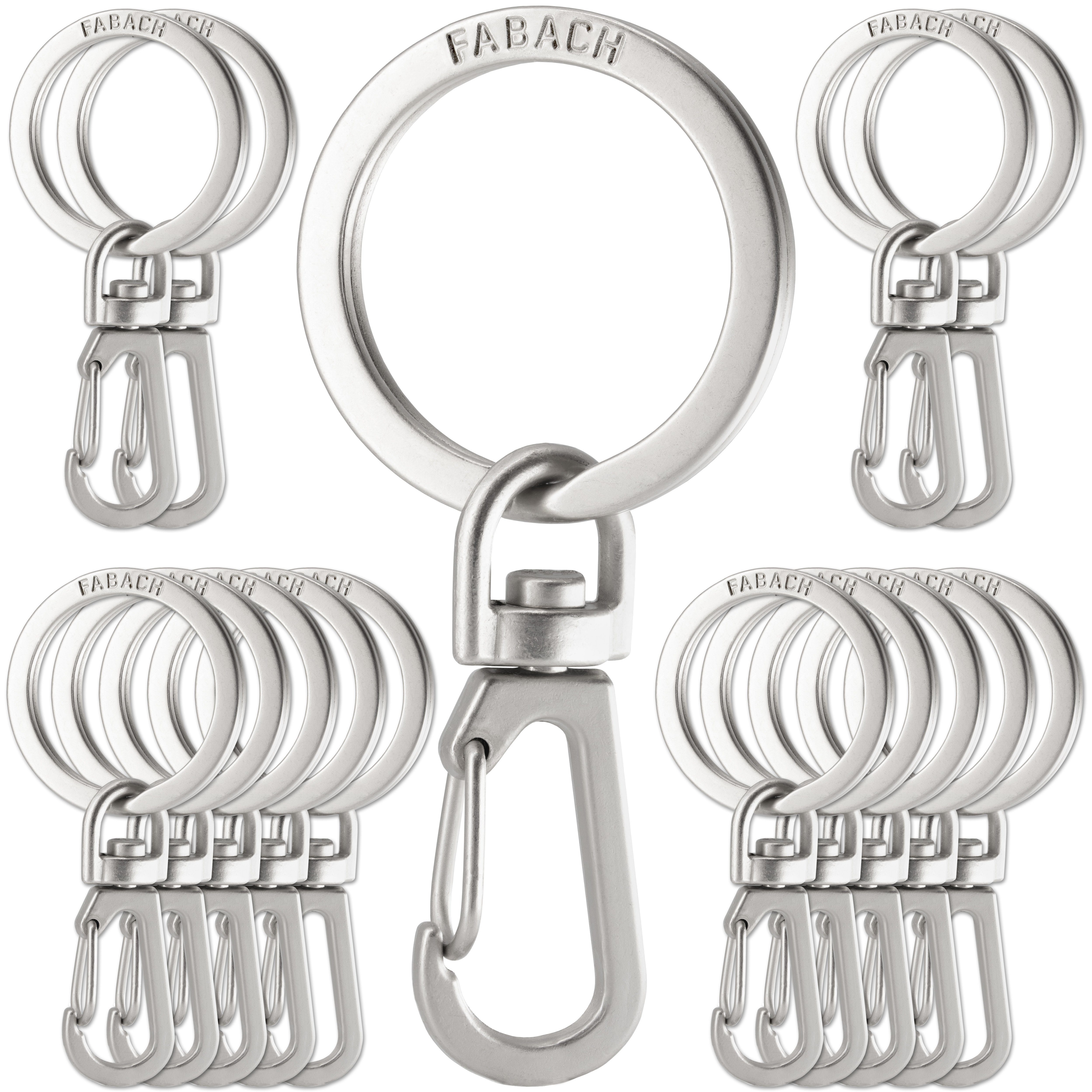Hochwertig und stabil: Die bewährten Schlüsselringe von FABACH finden auch für unsere eigenen Marken-Schlüsselanhänger Verwendung. Sie sind wie der drehbare Karabiner aus einer robusten Metalllegierung gefertigt und damit besonders langlebig. Machen Sie sich keine Sorgen mehr über einen Schlüsselverlust durch Отмена oder versehentliches Aufbiegen einzelner Bestandteile.