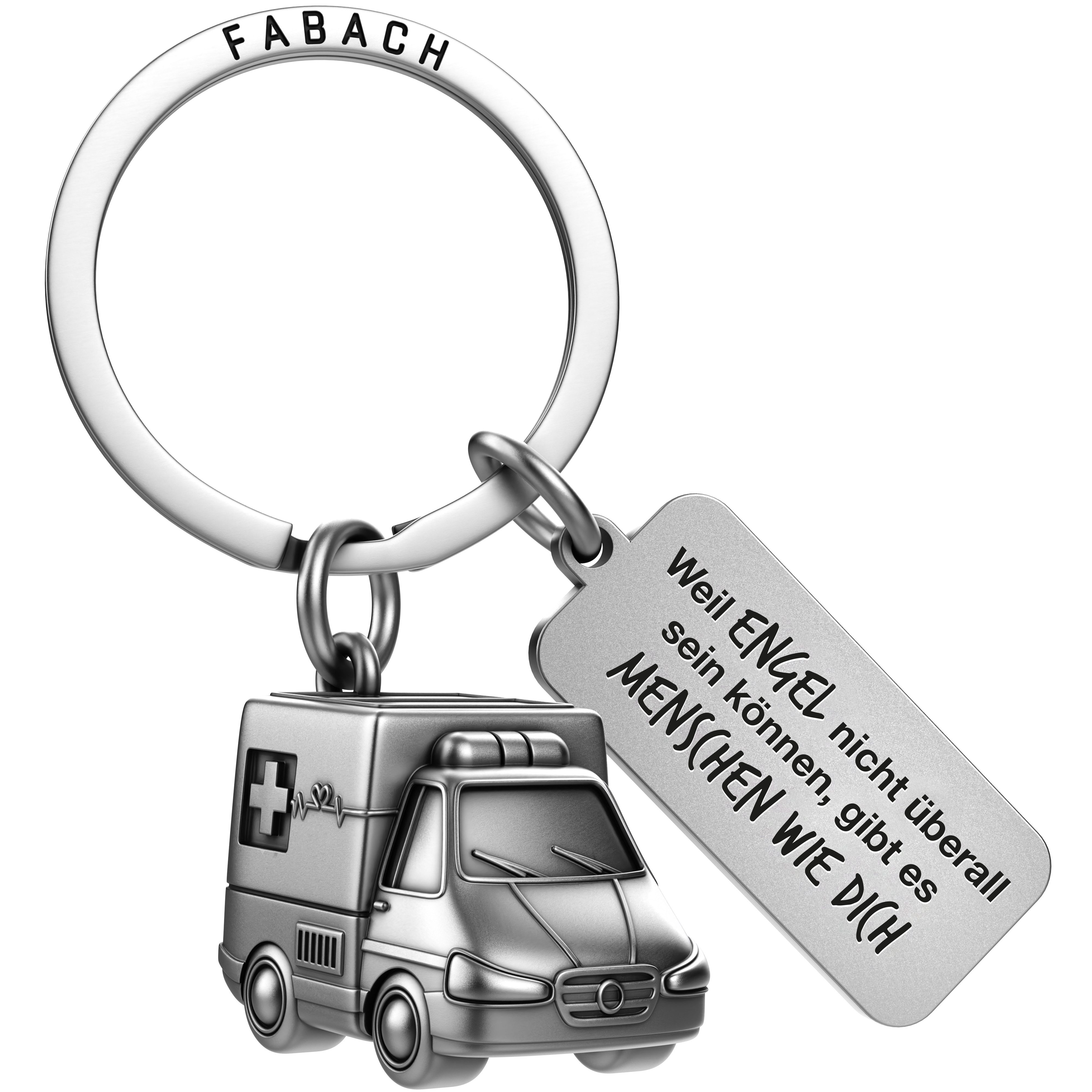 EIN MINIATUR KRANKENWAGEN ALS SCHLÜSSELANHÄNGER FÜR NOTFALLMEDIZINER: Ob Arzt, Ärztin, Krankenschwester, Sanitäter oder Pfleger - wir haben den Krankenwagen-Schlüsselanhänger mit Gravur „Weil Engel nicht überall sein können, gibt es Menschen wie dich“ für alle entwickelt, die in der Notfall Medizin arbeiten. Der Notarzt-Schlüsselanhänger ist ein wunderbarer Glücksbringer für jeden Arzt, jeden Krankenpfleger, jede Intensiv-Krankenschwester und jede Ärztin mit Herz. DER SCHLÜSSELANHÄNGER FÜR MEDIZINER ALS GESCHENK: Sie suchen nach einem Glücksbringer-Geschenk für einen Notfallsanitäter oder einer Geschenkidee für einen passionierten Arzt zum Abschied? Sie möchten einer Krankenschwester mit Herz Danke sagen? Unser Mediziner-Schlüsselanhänger ist die perfekte Wahl. Zeigen Sie einer engagierten Notärztin, einer fürsorglichen Arzthelferin oder einem feinfühligen Sanitäter mit dem Krankenwagen-Schlüsselanhänger Ihre Wertschätzung. DER NOTFALLARZT-SCHLÜSSELANHÄNGER IN HÖCHSTER QUALITÄT: Wir möchten, dass der Glücksbringer für Notfall Mediziner den Beschenkten für immer begleitet. Daher ist der Krankenwagen-Schlüsselanhänger dank der schützenden Oberflächen-Veredelung besonders robust und langlebig. Das wertige Gewicht und die ideale Размер machen ihn zum perfekten Accessoire am Schlüsselbund. Im beiliegenden Samtbeutel können Sie den Miniatur Krankenwagen aus Metall direkt verschenken.