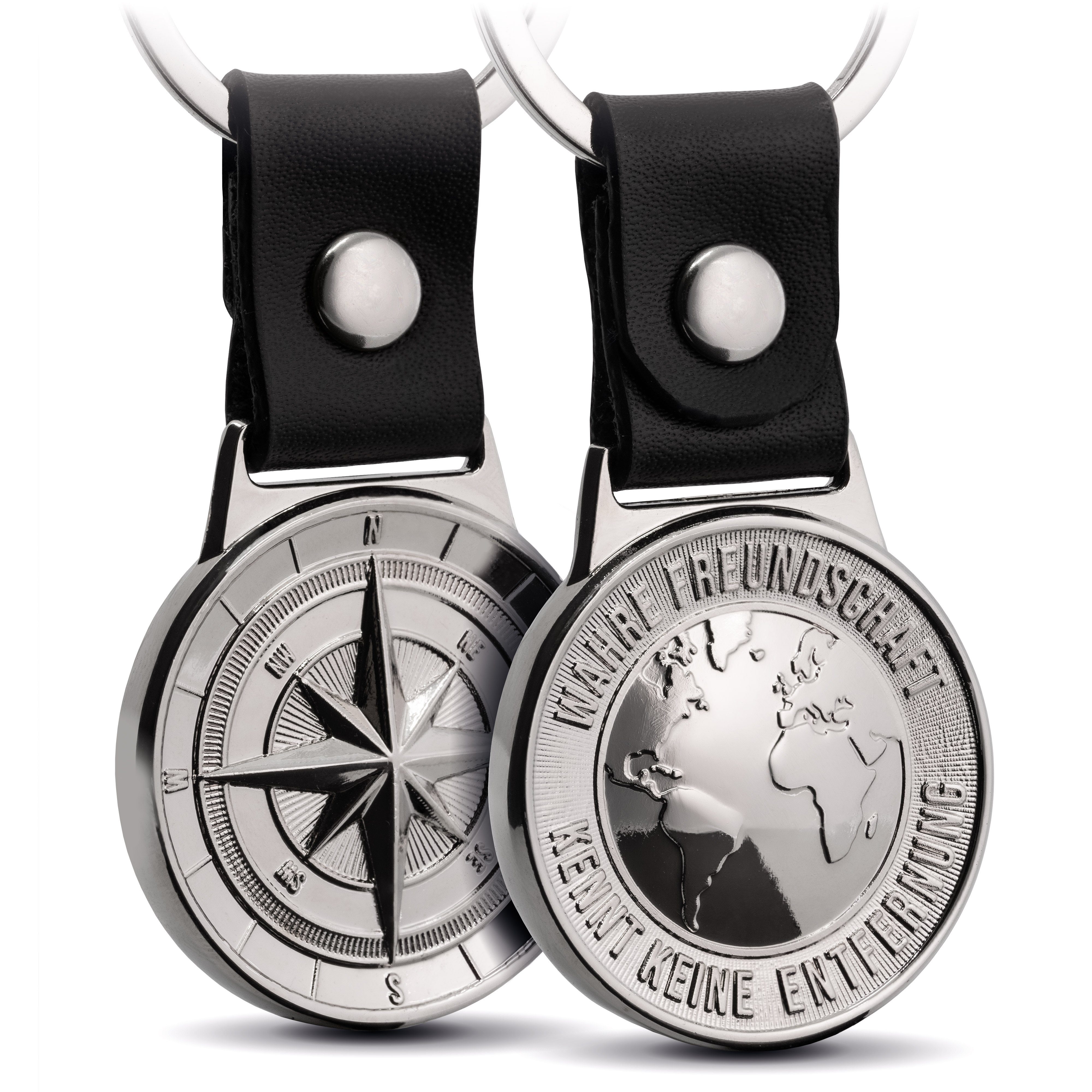 Symbol für Freundschaft: Manche Menschen finden immer wieder zusammen, auch wenn große Entfernungen zwischen ihnen liegen. Ihren besten Freunden dient der Kompass Schlüsselanhänger als Wegweiser und die Gravur auf der Rückseite als Erinnerung an Ihre besondere Verbindung - denn egal wieviele Kilometer Sie trennen: "Wahre Freundschaft kennt keine Entfernung"
