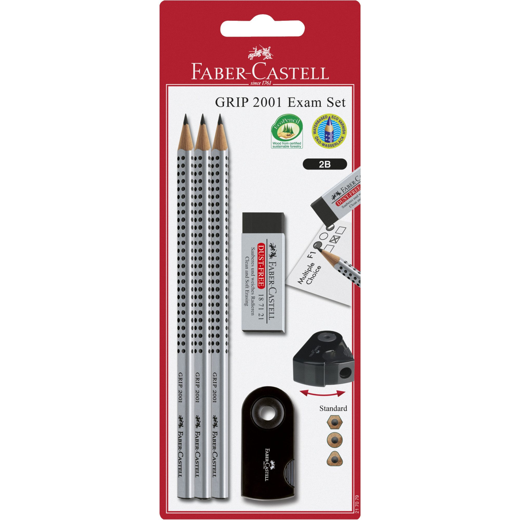 Bleistiftset Grip 2001 EXAM BK. ideale Ausstattung für Prüfungen, inkl. Bleistift, Spitzer und Radiergummi. Ausführung Stift: Ausführung der Schaftform: ergonomische Dreikantform, Härtegradkennzeichnung vorhanden, Bezeichnung der Härte: 2B, Ausführung des