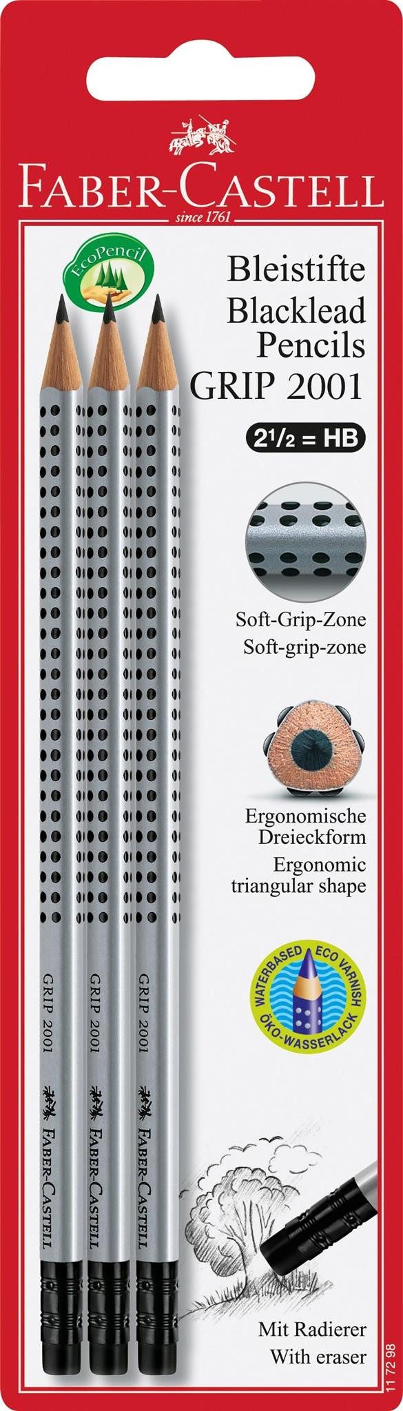 • Faber Castell Bleistift Grip 2001 mit Gummitip HB silber 3er