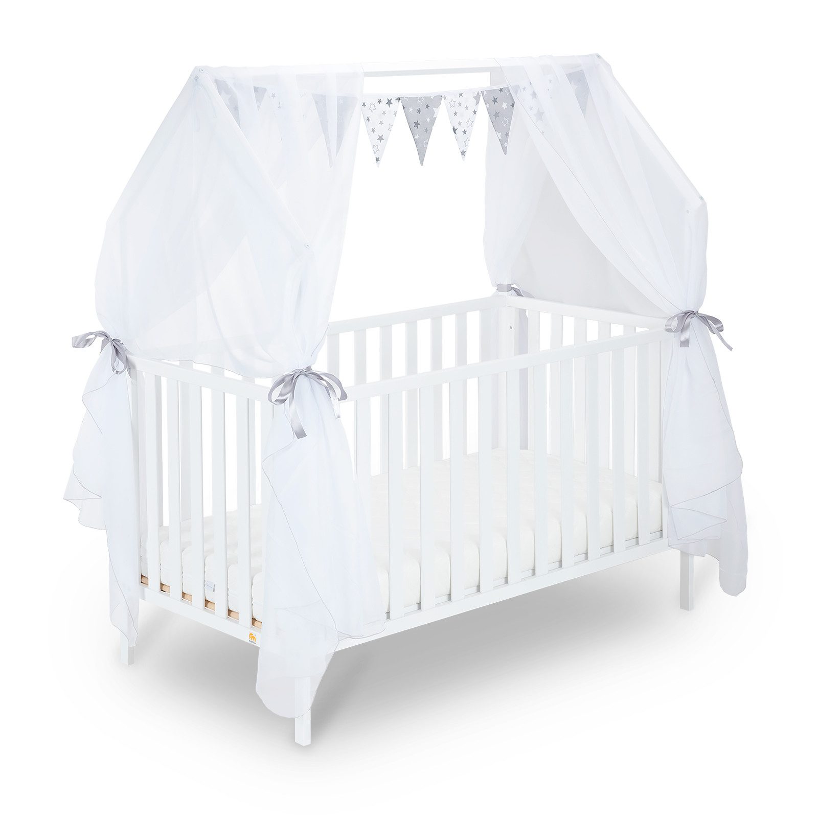 Hinweis: Das Angebot umfasst Betthimmel (2-teilig) und Wimpelkette. Das Bett ist nicht im Lieferumfang enthalten.