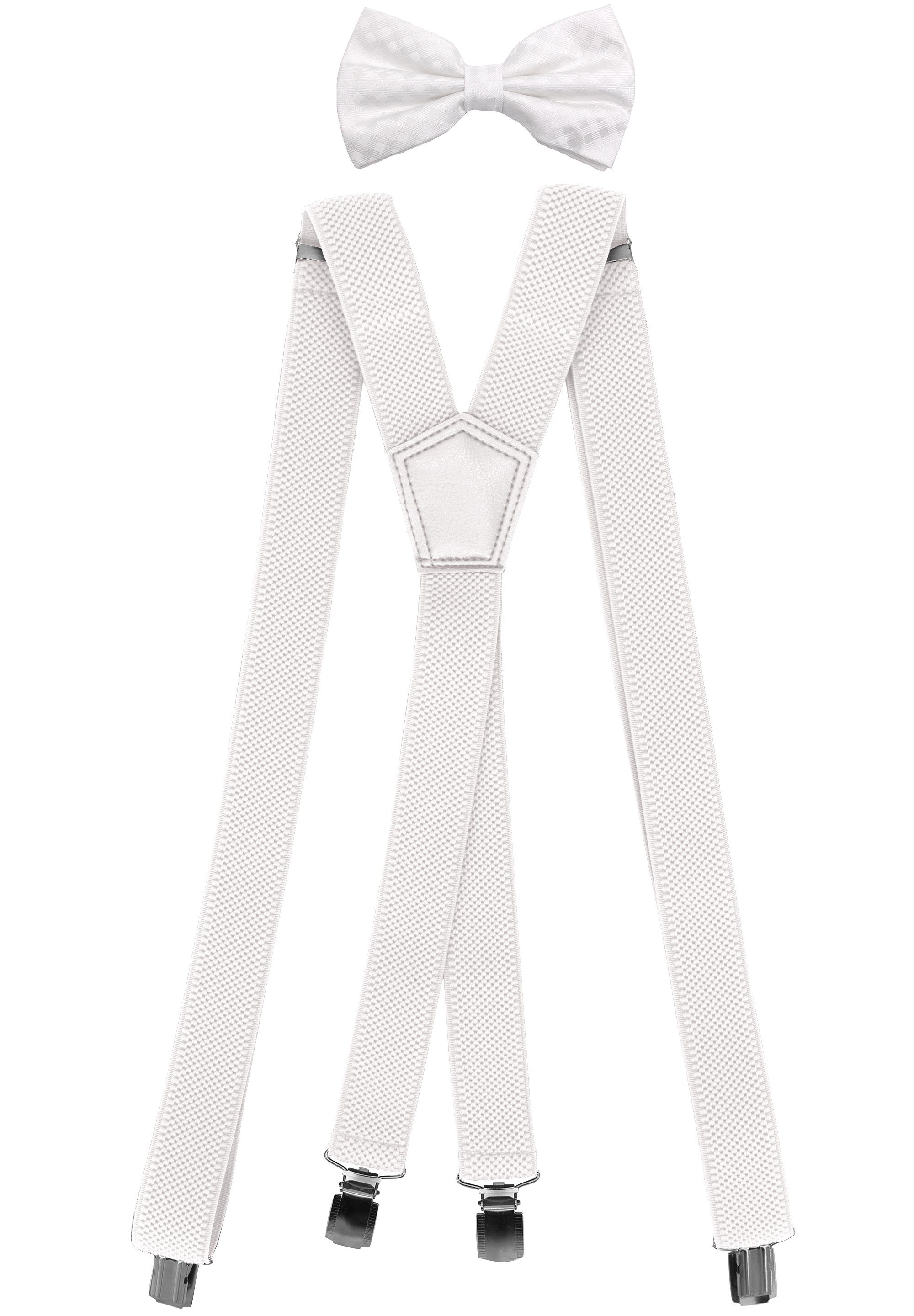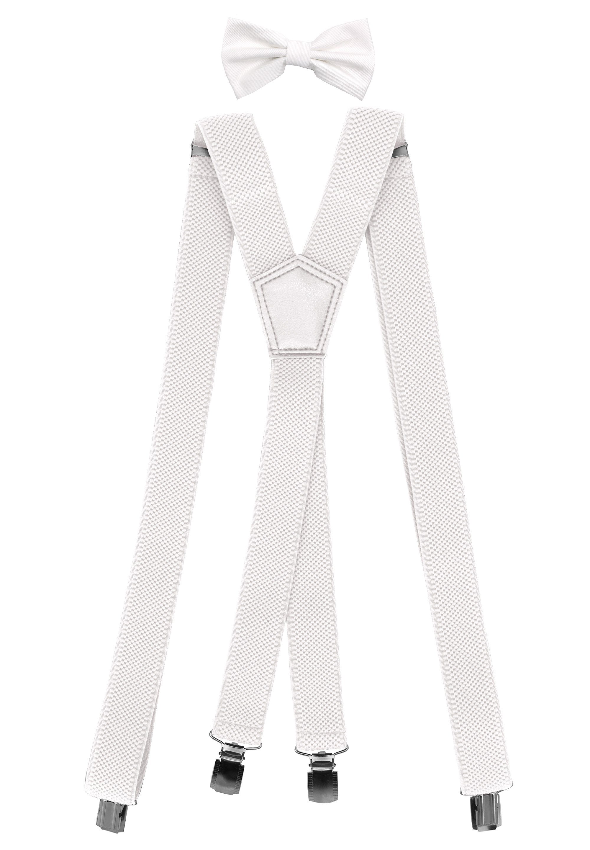 Besondere Merkmale | Set Weiß 3cm Hosenträger - Weiß Unifarben Streifen Struktur Fliege |