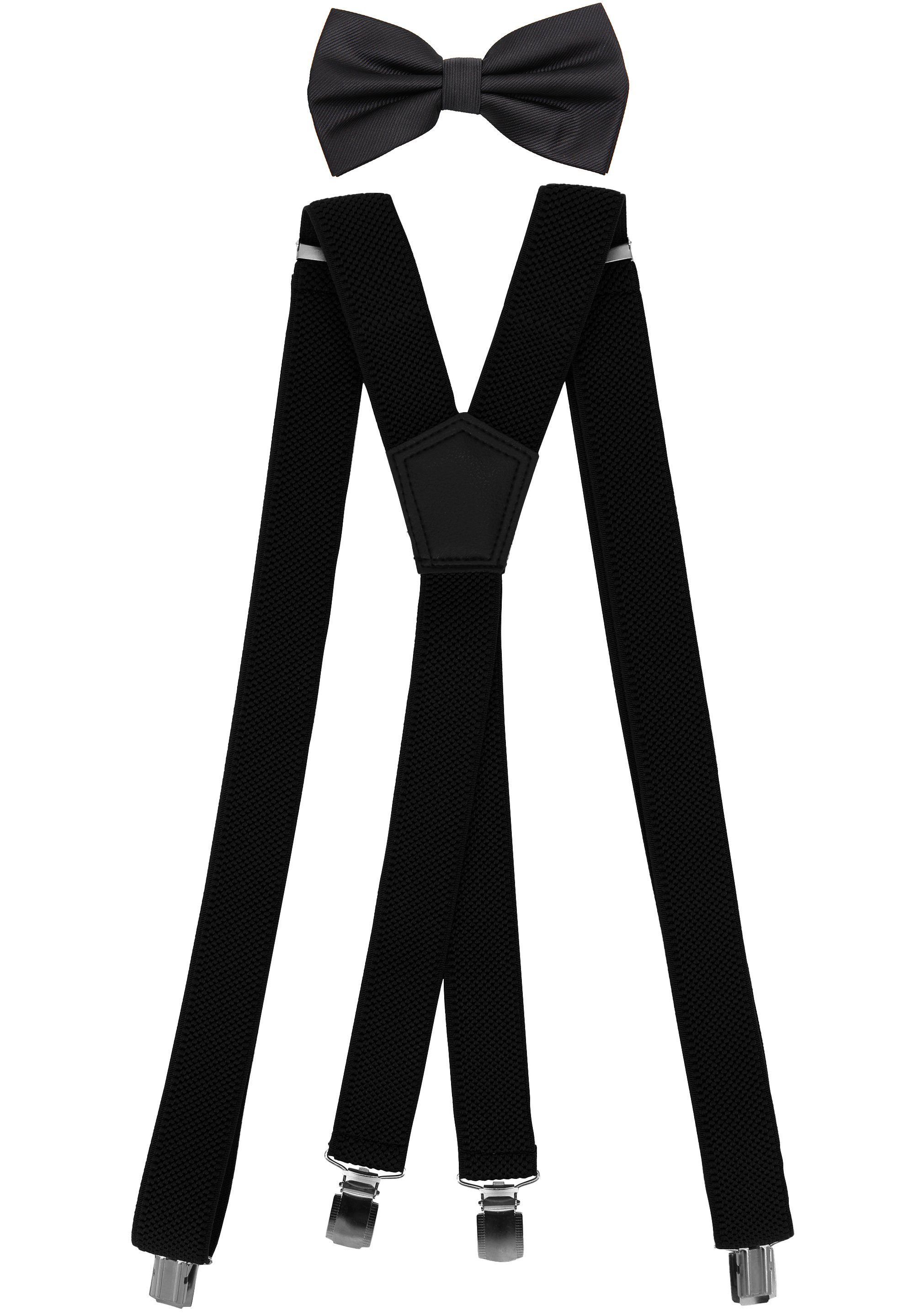 Materialzusammensetzung | Hosenträger: 80% Polyester, 20% Elasthan, Fliege: 100% Polyester |