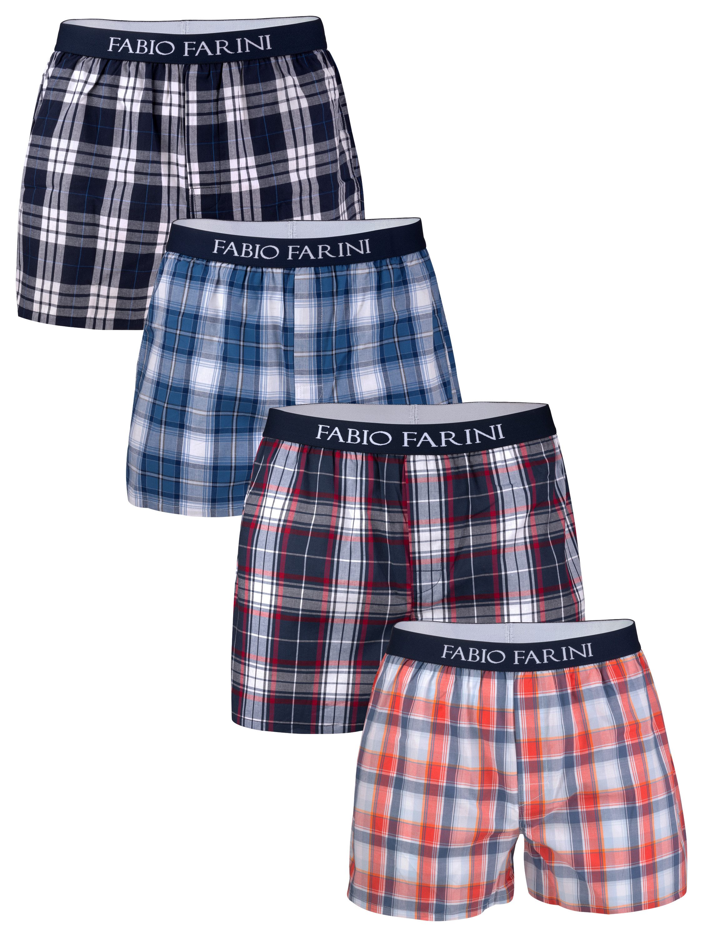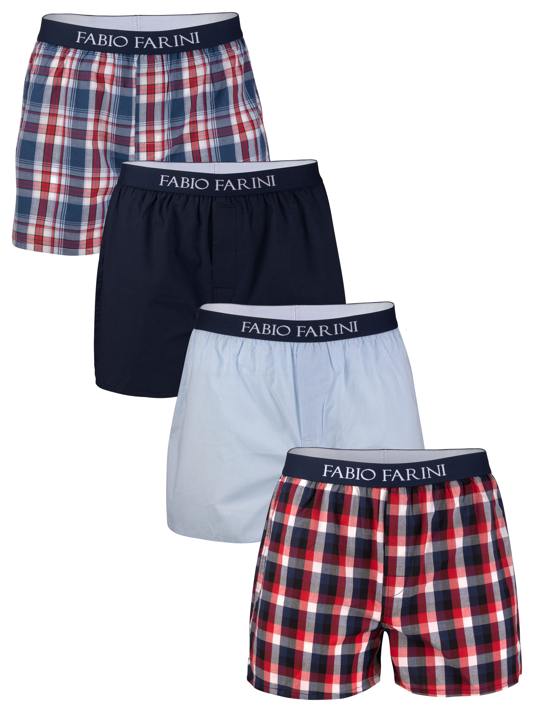 Gehören auch Sie zu den Männern, die sich vom klassischen Feinripp- oder Doppelripp-Slip verabschiedet haben? Dann liegen Sie voll im Trend: Jeder dritte Mann in Deutschland, so beschreibt es eine Studie, setzt inzwischen auf mehr Beinfreiheit und trägt Boxershorts. Kein Wunder bei der Auswahl an modischen Modellen! Hier wurden jeweils vier Boxer in verschiedenen Farben und Mustern zu einem praktischen Multi-Pack kombiniert. Все verfügen über einen Eingriff mit verdeckter Knopfleiste und einen elastischen Taillenbund, der mittig das beliebte Fabio-Farini-Designerlabel trägt.