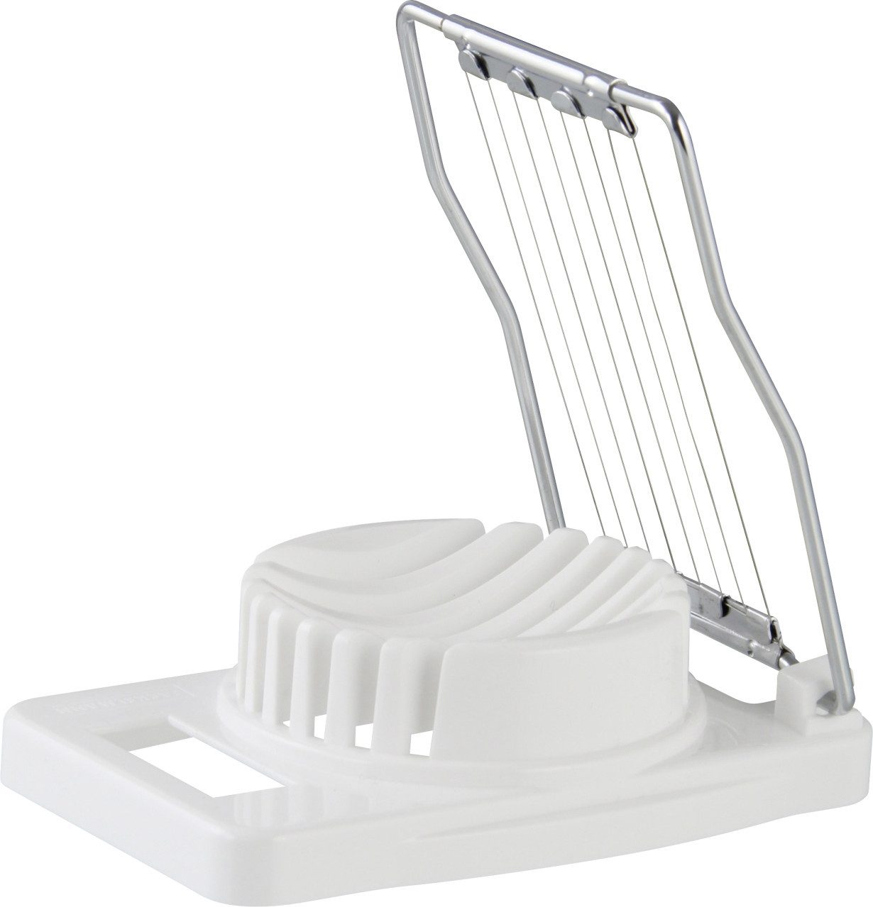 Der Eischneider schneidet gekochte Eier in gleichmäßige Scheiben- praktisch für das Frühstück oder zur Dekoration. Er besteht aus hochwertigem Kunststoff, mit rostfreien Scheiddrähten. Auch gekochte Pellkartoffeln lassen sich prima schneiden.