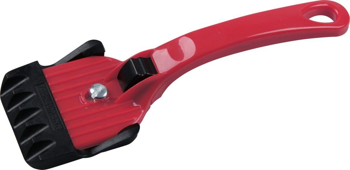 Werkzeug ebenfalls einfach. Wenn der Aufsatz umgedreht wird, wird ein gerilltes Profil angezeigt. Der Kunststoffaufsatz des Reinigungsschabers kann