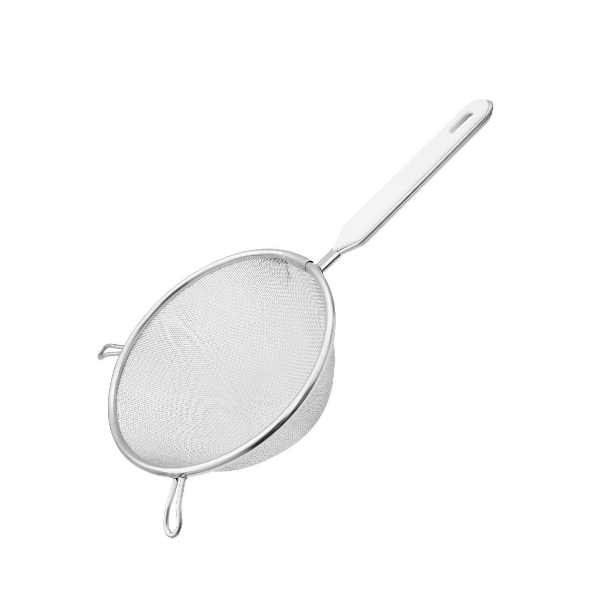 Das hochwertige und feinmaschige Edelstahl-Sieb von Fackelmann ist der ideale Helfer für das Sieben von Zutaten aller Art. Der angenehme Griff rutscht während des Einsatzes nicht aus der Hand, zudem sorgt die Auflegeöse dafür, dass das Sieb stabil und sicher aufliegt. Nach dem Gebrauch kann das Sieb ganz einfach zur Reinigung in die Spülmaschine gegeben werden.