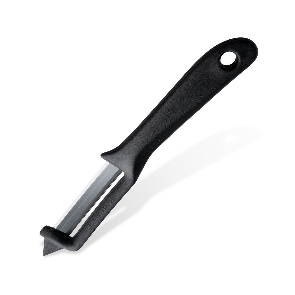 Schnelles Schälen von Obst und Gemüse ist mit dem Spargelschäler von Fackelmann kein Problem mehr. Der Weltmeister-Spargelschäler wird von dem Spargelschäl-Weltmeister Helmut Zipner empfohlen. Mit seiner beweglichen Klinge passt er sich dem Schälgut optimal an. Außerdem verfügt er über eine lange Schnitthaltigkeit und eignet sich auch sehr gut zum Ausstechen unschöner Stellen am Gemüse. Nach der Verwendung kann der Schäler einfach in der Spülmaschine gereinigt werden.