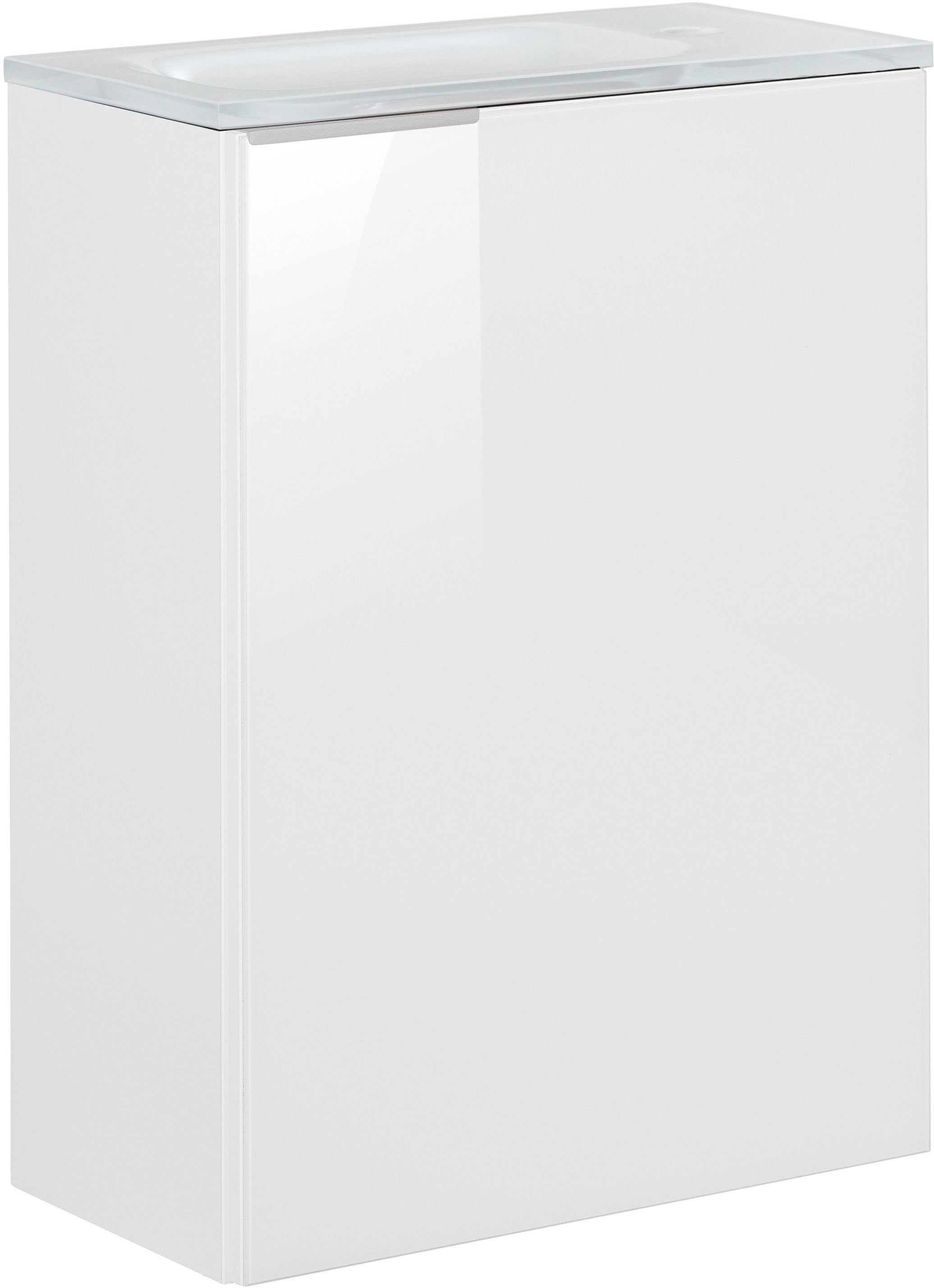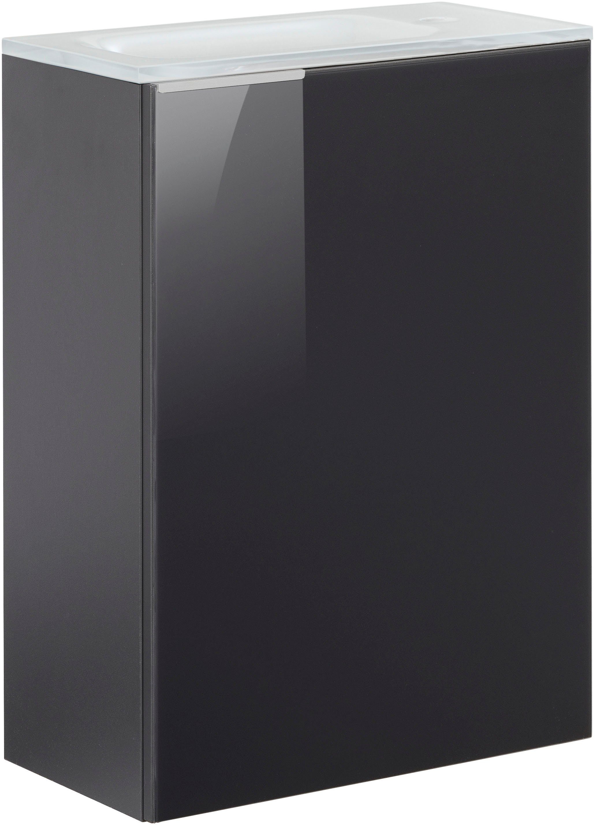 Lieferumfang | Glasbecken mit Permanentablauf LED-Band mit Bewegungsmelder Waschbeckenunterschrank 45cm |