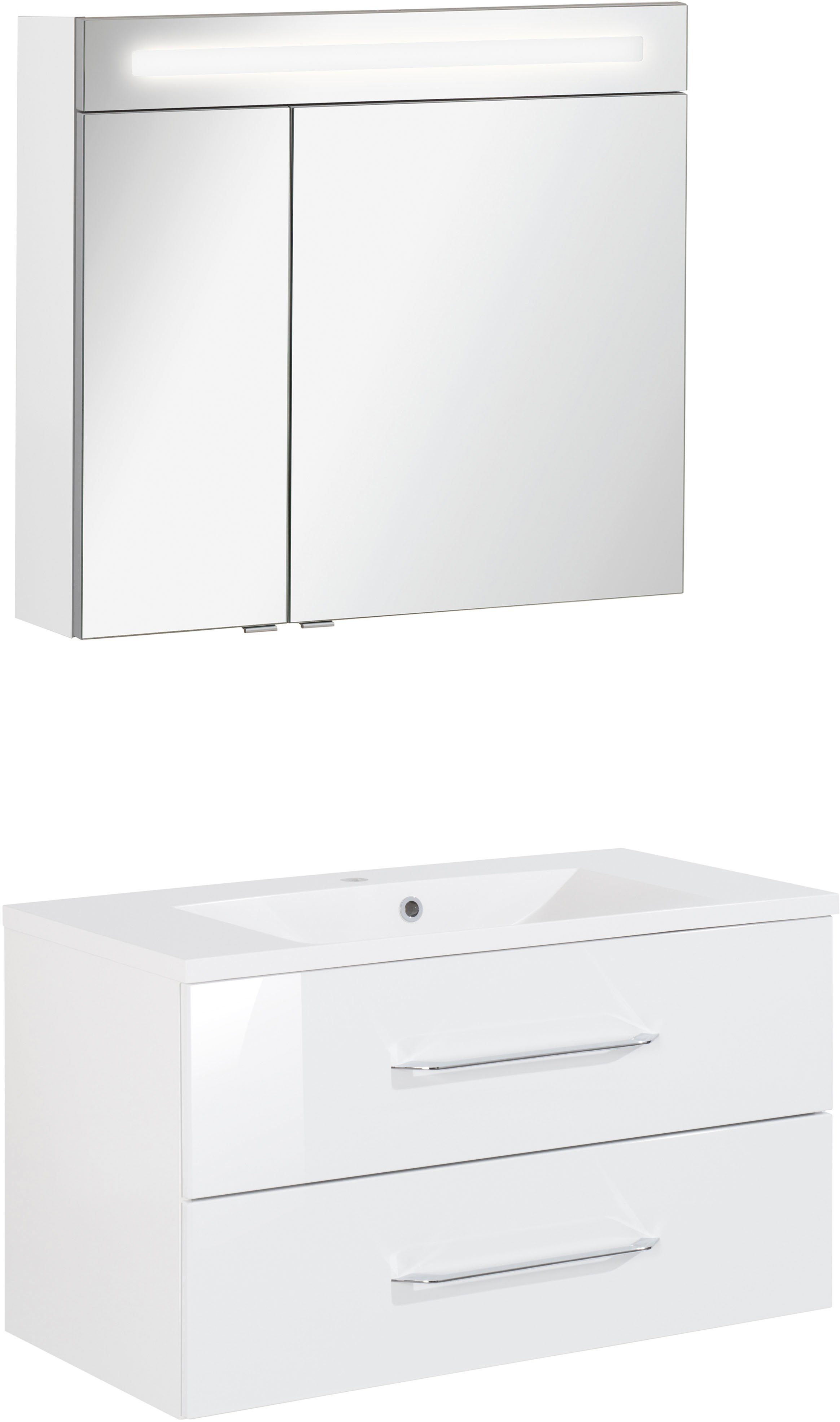 Lieferumfang | Spiegelschrank, Becken, Waschtischunterbau, Befestigungsmaterial, Montageanleitung |
