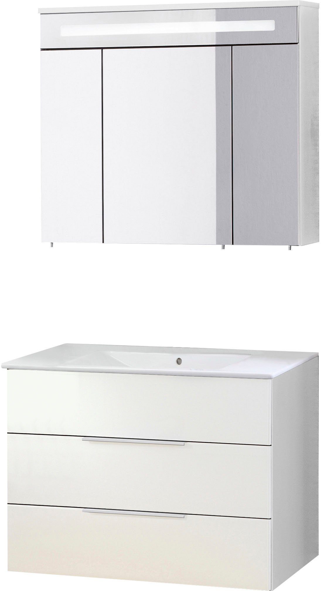 Lieferumfang | Spiegelschrank, Becken, Waschtischunterbau, Befestigungsmaterial, Montageanleitung |