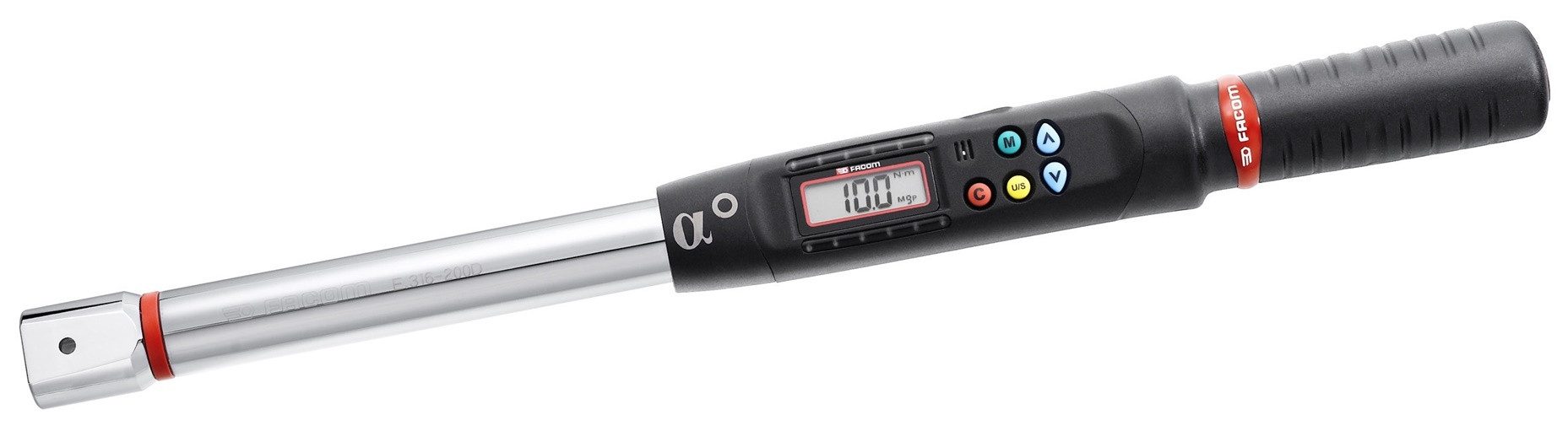 Facom E.316-200D Drehmomentschluessel 10 - 200 Nm Elektronischer Drehmoment- und Drehwinkelschlüssel mit Drehmomentanzeige 10 - 200 Nm Produktstärken: Drehmoment: ± 2 % zwischen 20 und 100 % der Schlüsselkapazität Winkel: ± 2° Anschluss: 9x12 und 14x18 mm Messmodus: Scheitelpunkt oder Folger Tastenfeld sperrbar, der Bediener hat nur Zugriff auf die Programmwahl und die Abspeicherung der Ergebnisse Messeinheit: Nm, lbf.ft, lbf.in, kgcm und Grad Voreinstellung von 9 Drehmoment- und/oder Winkelwerten möglich Speicher für 250 Werte mit USB-Verbindung zum PC Lieferung mit einem Eichzertifikat Lieferung im Kunststoffkasten und Schaumstoffeinsatz