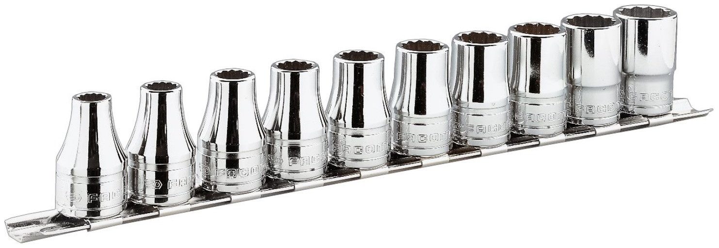 Facom S.40U Steckschluessel-Set 1/2'''', 7-tlg Satz mit Steckschlüsseln 1/2'' zöllisch auf metallischer Halteschiene Lieferumfang: S. 3/8' - 7/16' - 1/2' - 9/16' - 19/32' - 5/8'