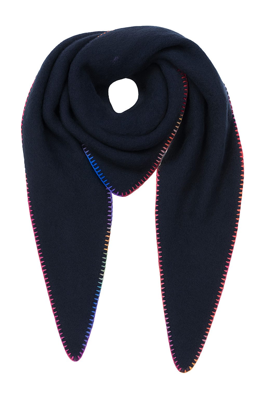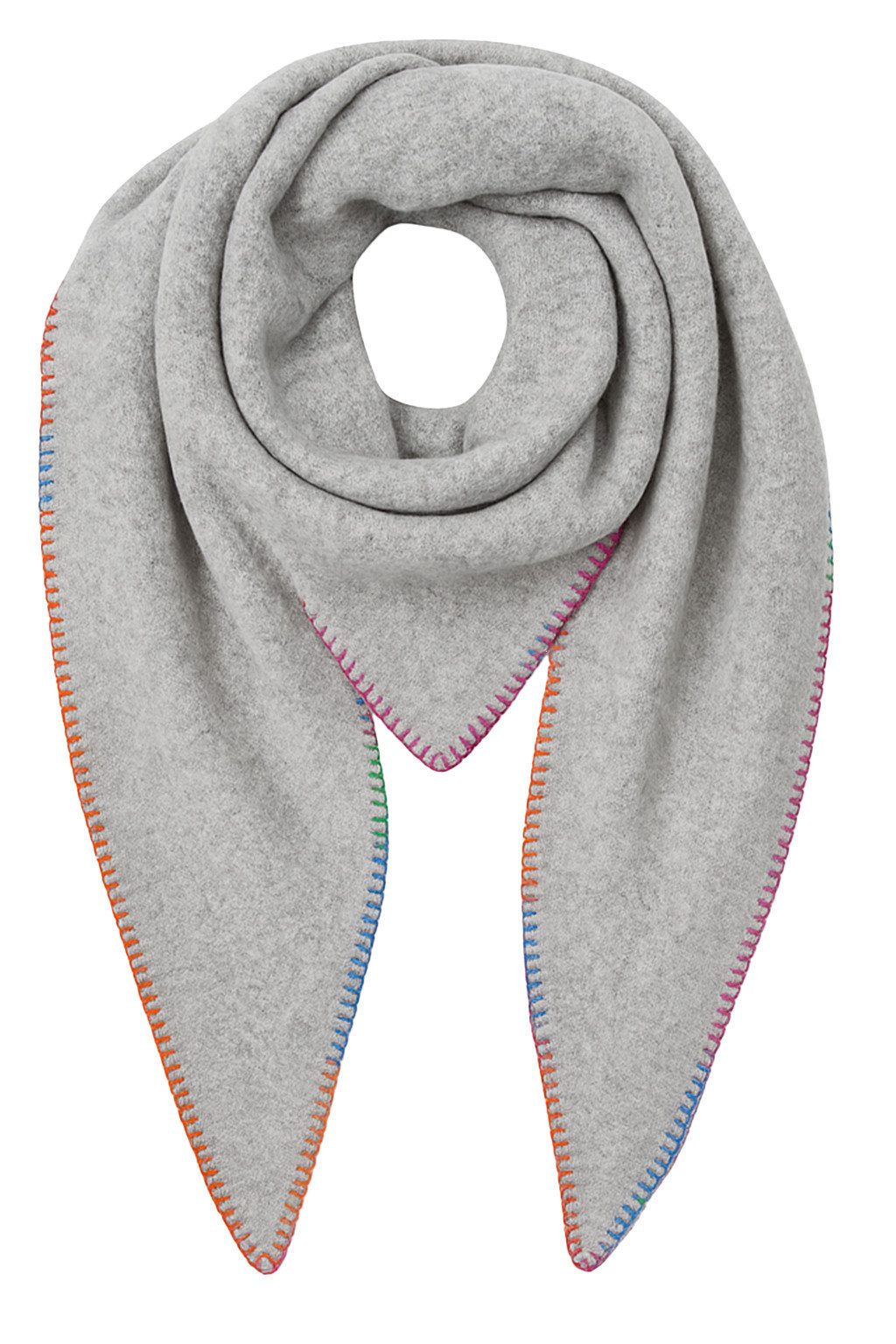 Weicher Schal in Dreiecksform mit farbiger Zierstichkante – modern und vielseitig.