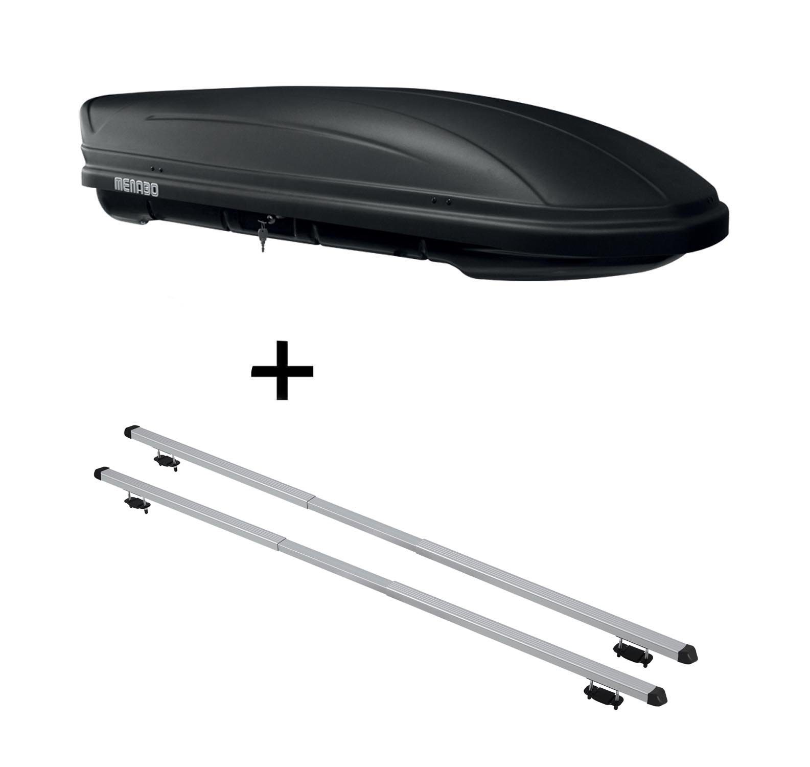 Dachbox 400 Liter 179x 79 x 37 cm (L x B x H), schwarz matt+ 2 Teleskopdachträgerstangen, individuell verstellbar von 85-135 cm.