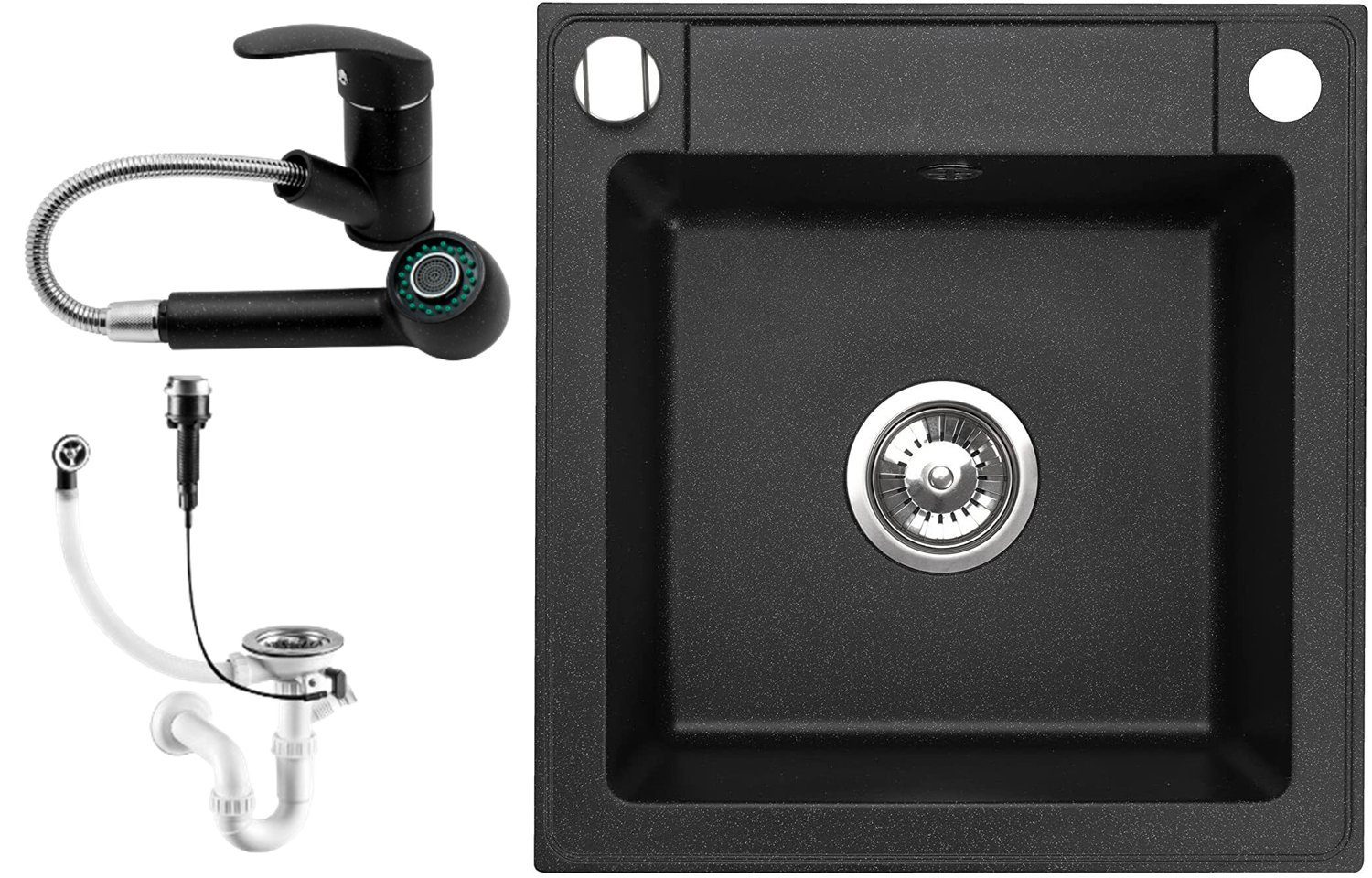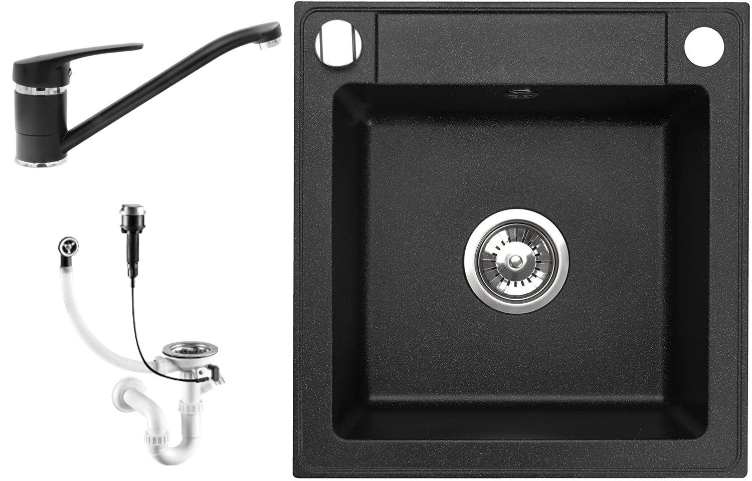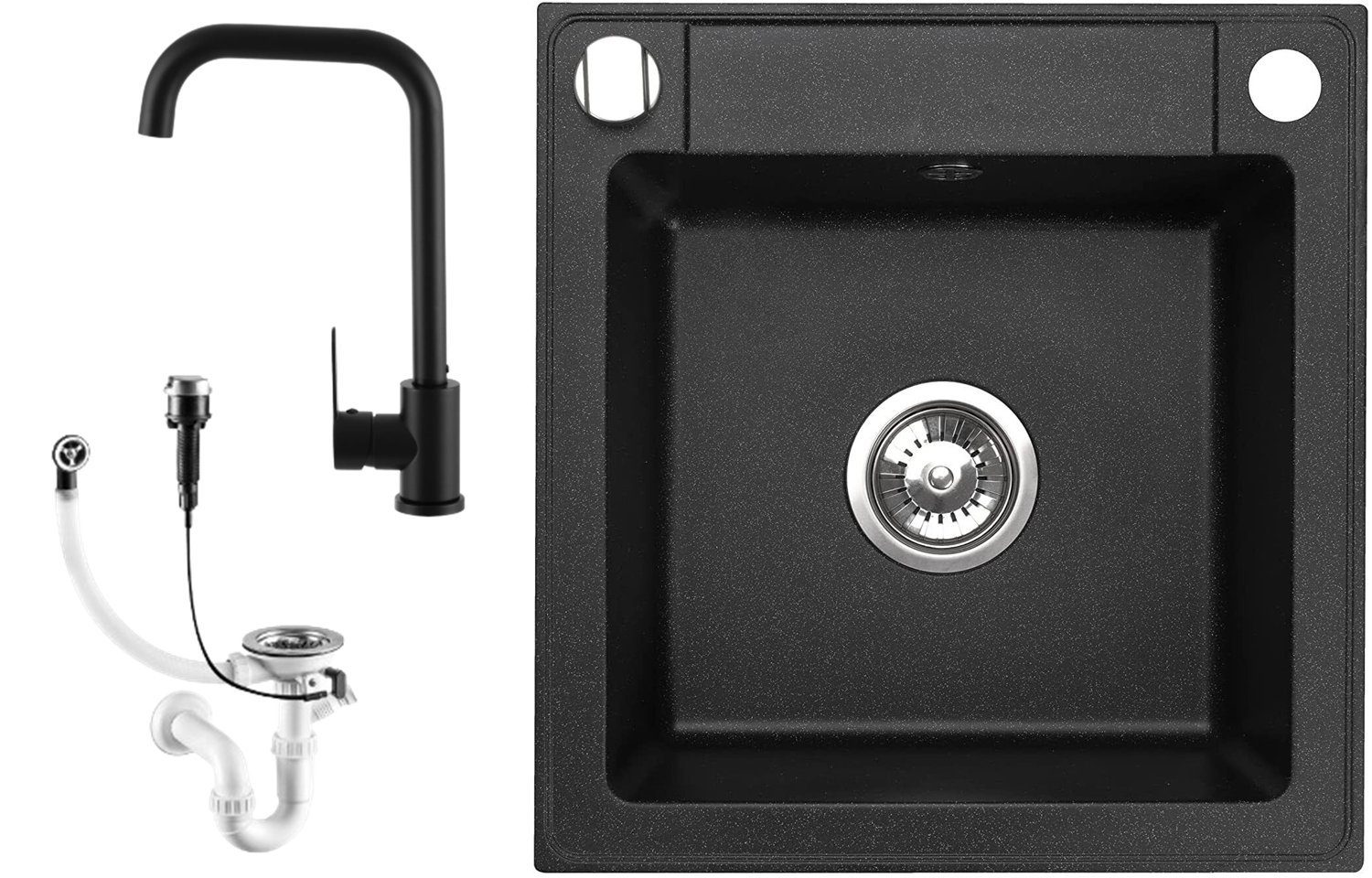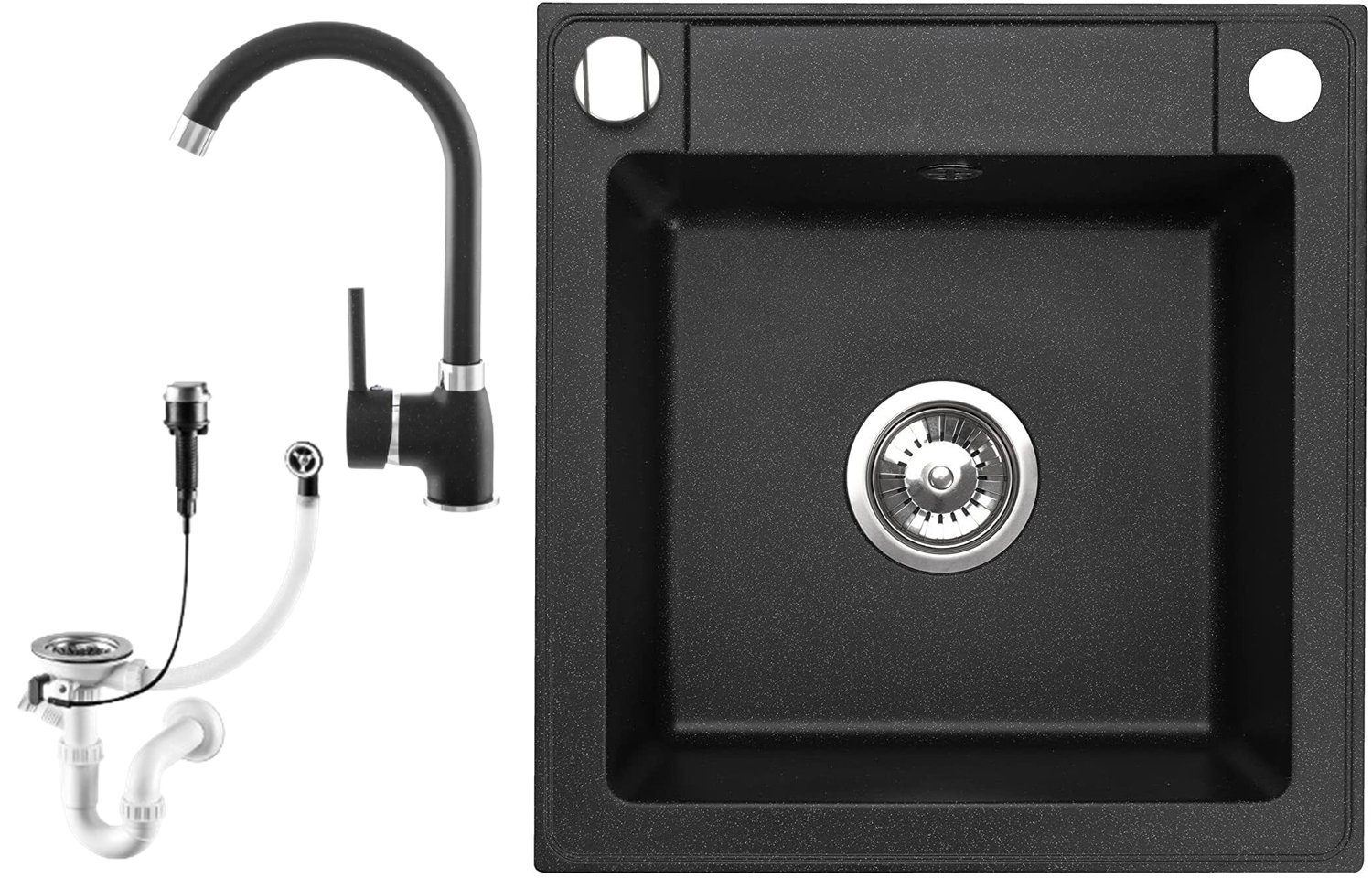 Mit den vorgebohrten Löchern für eine Armatur und dem enthaltenen Siphon Set können Sie Ihre Spüle sofort anschließen und das Becken beidseitig montieren.
