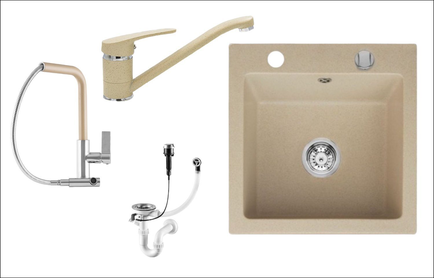 - Spüle - Armatur - Inkl. Markenhaftes Siphon Set (inkl. Anschluss für Wasch,- oder Geschirrspülmaschine)