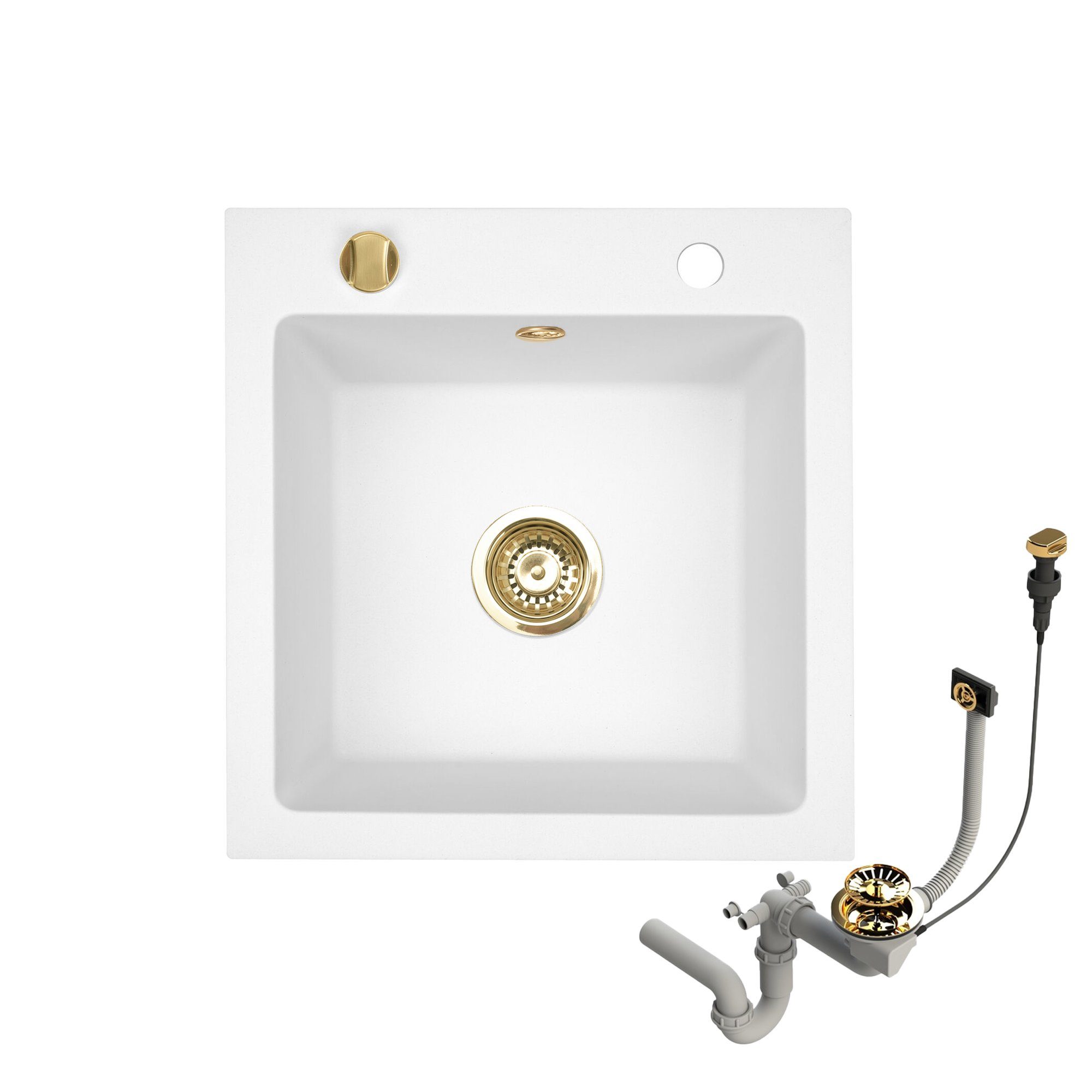 - Spüle Beige - Inkl. Markenhaftes Siphon Set (inkl. Anschluss für Wasch,- oder Geschirrspülmaschine)