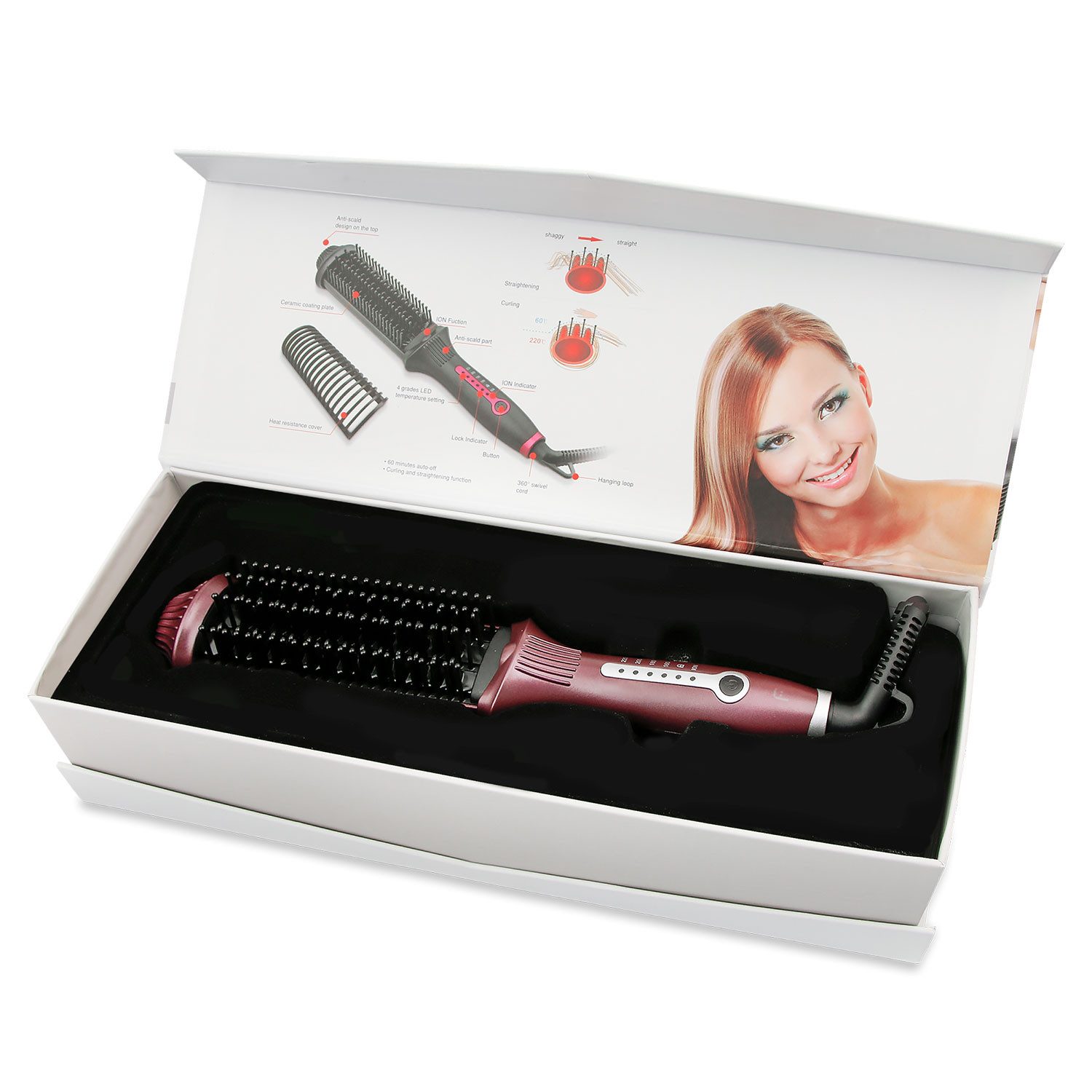 Die Fakir Illusion Effect Haarglättbürste kombiniert Glättung und Pflege in einem Gerät. Mit einer Leistung von 50 Watt und einer 4-stufigen LED-Temperatureinstellung bis zu 220 °C passt sie sich optimal verschiedenen Haartypen an.