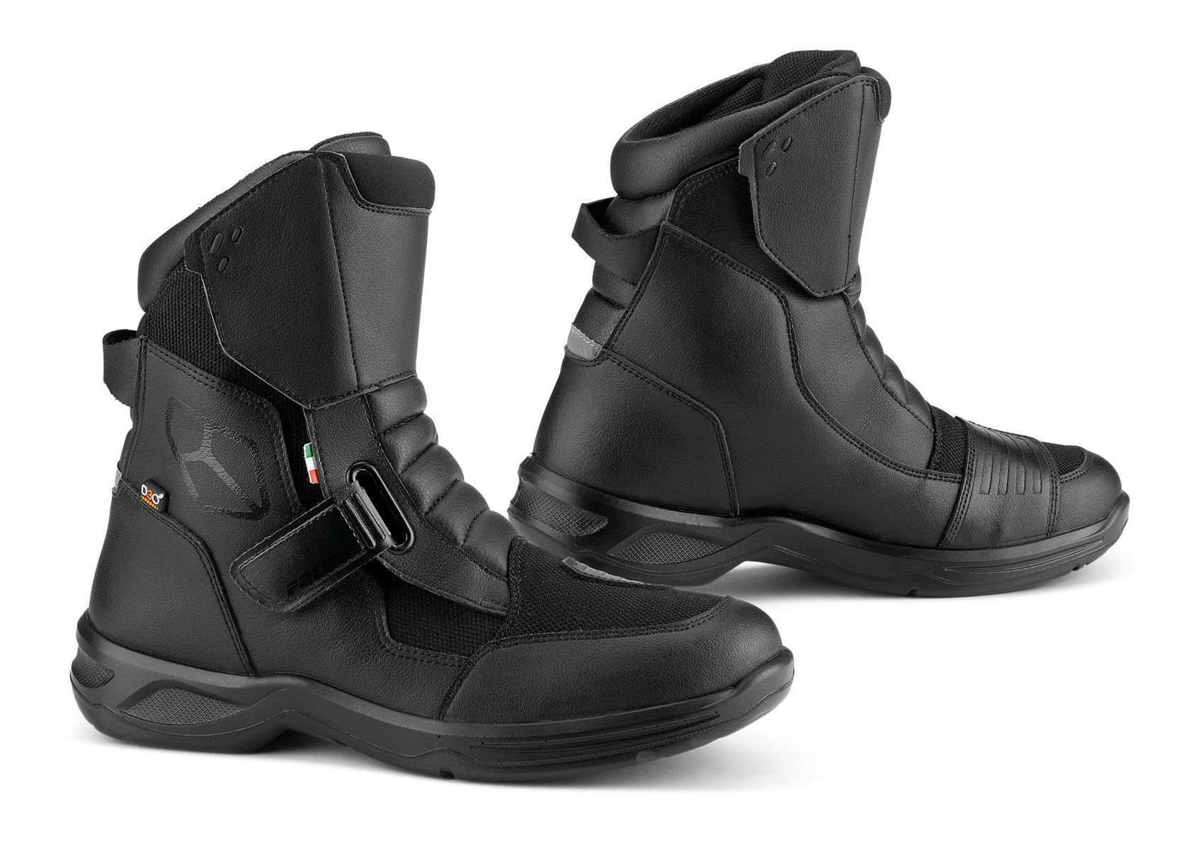Falco Land 2. Robuster Kurzschaftstiefel mit atmungsaktiver und wasserdichter HIGH-TEX® Membrane. Stretcheinsätze sorgen für ein angenehmes Tragegefühl. Ausstattung: D3O® Knöchelprotektor eingearbeitet; Klettverschluss. Schafthöhe: ca. 25 cm; vorgeformtes, vibrationsabsorbierendes, orthopädisches Fussbett. Obermaterial: hochwertiges Micro-Faser Material; Innenfutter: Polyester (Mesh); Sohle: vulkanisierte Gummisohle. Informationen zu den eingebauten Technologien: HIGH-TEX® geprüfte FALCO-Membrane gegen dasEindringen von Wasser in den Stiefel. Die einzige wissenschaftliche Prüfung zur Bestimmung, Festlegung und Angabe, ob ein Motorradstiefel wasserdicht ist, ist die Prüfung nach EN 13634: 2010. Die Prüfmethode besteht aus 100 Schritten auf einer geeigneten Plattform mit einem Wasserstand von 5 mm über der Sohle. Nach erfolgreichem Abschluss dieses Tests gilt der Schuh als wasserdicht. Der D3O® Aufprallschutz wurde in der Wintersport- und Militärindustrie entwickelt und kam als erstes bei FALCO-Stiefeln zur Anwendung. Die intelligenten D3O® Moleküle fließen frei, wenn Sie sich langsam bewegen. Im Falle eines Aufpralls schließen diese Moleküle zusammen, um die Stoßenergie zu absorbieren. Durch den besonderen Schutz von D3O® wird die Schlagkraft auf den Knöchelbereich deutlich reduziert. AIR-TECH® Futter mit überlegenen Eigenschaften: welches strukturell entwickelt wurde, um extrem atmungsaktiv, hochwertig, schnell trocknend und umweltfreundlich zu sein. Italienisches Produkt. Die italienische Handwerkskunst in der Motorradstiefelproduktion, hat eine über 20 jährige Geschichte in der Kombination von hochwertigen Materialien mit innovativen Konstruktionslösungen. Hochqualifizierte Techniker begleiten jeden Produktionsschritt in hochentwickelten Industrialisierungsprozessen. Die Qualität der italienischen Применитьung ist für FALCOs Erfolg von zentraler Bedeutung. Zertifiziert nach EN-13634: 2010Dieses Produkt ist mit der Europäischen Richtlinie 89/686/CEE konform. Die Zertifizierung nach der Norm EN 13634: 2010 erfolgt durch Labortests. Die Europäische Norm EN 13634: 2010 umfasst zwei Leistungsstufen in Bezug auf den gewährten Schutz. Dabei gilt die Stufe „Stufe 1“ als Mindestanforderung. „Stufe 2“ bietet eine erhöhte Leistung. Diese Stufen bestätigen Abriebfestigkeit, Schnittfestigkeit und Härte der Unterseite.