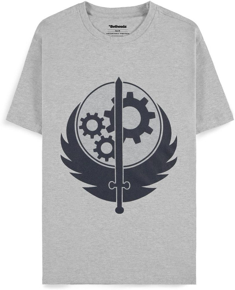 Das Fallout Core - Brotherhood of Steel Herren-T-Shirt ist ein Must-Have für alle Fans der beliebten Videospielreihe. Das kurzärmelige Shirt besticht durch sein cooles Design mit dem ikonischen Brotherhood of Steel Logo auf der Vorderseite. Der hochwertige Druck sorgt für eine langanhaltende Farbbrillanz und macht dieses Shirt zu einem echten Blickfang. Dank des angenehmen Materials aus 100% Baumwolle bietet das T-Shirt einen hohen Tragekomfort und ist sowohl für den Alltag als auch für Gaming-Sessions bestens geeignet. Die bequeme Passform und der klassische Rundhalsausschnitt machen dieses Shirt zu einem vielseitigen Kleidungsstück, das in keiner Gamer-Garderobe fehlen darf. Ob als Geschenk für einen Freund oder als Belohnung für sich selbst - das Fallout Core - Brotherhood of Steel Herren-T-Shirt ist ein echtes Must-Have für alle Fans der postapokalyptischen Spielwelt. Zeige deine Verbundenheit zur Brotherhood of Steel und trage dieses stylische Shirt mit Stolz!