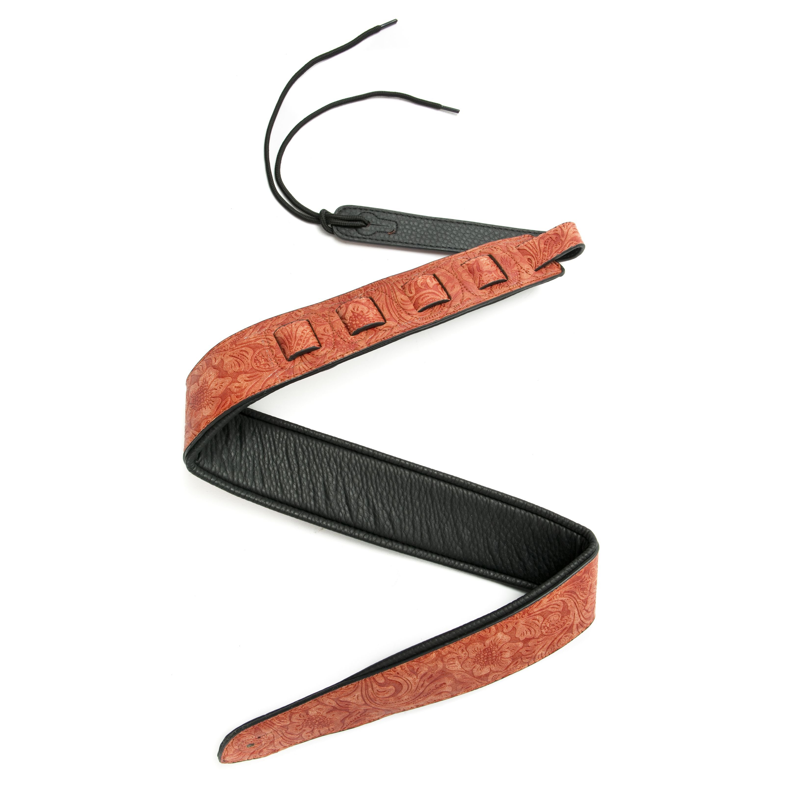 Premium Leder Gitarrengurt, Floral Muster, Rot